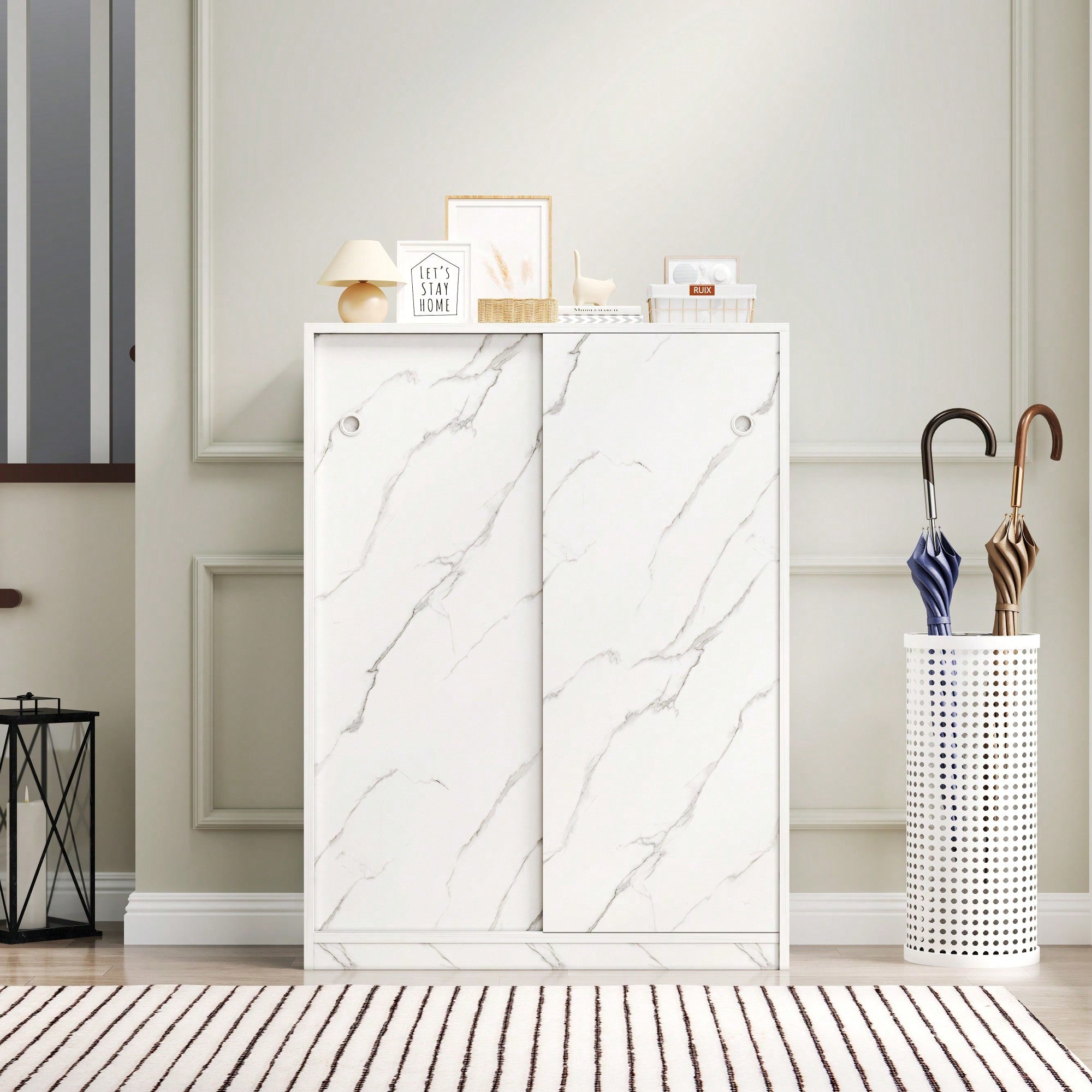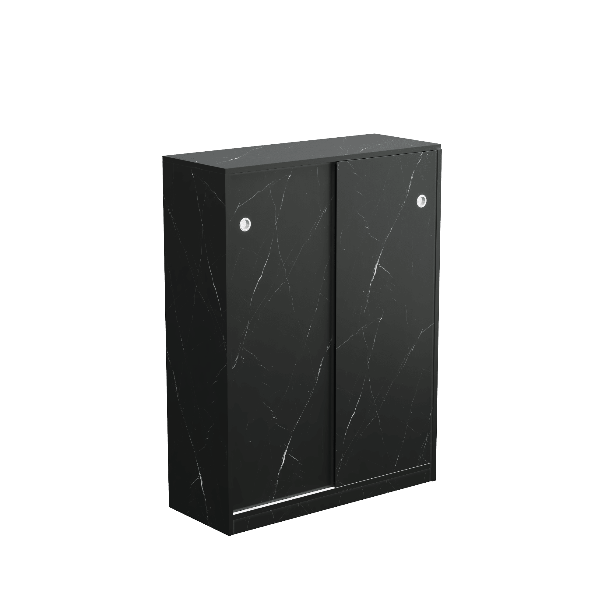 Marble Black Sliding Door Shoe Cabinet With 6 Layers For Up To 30 Pairs Of Shoes