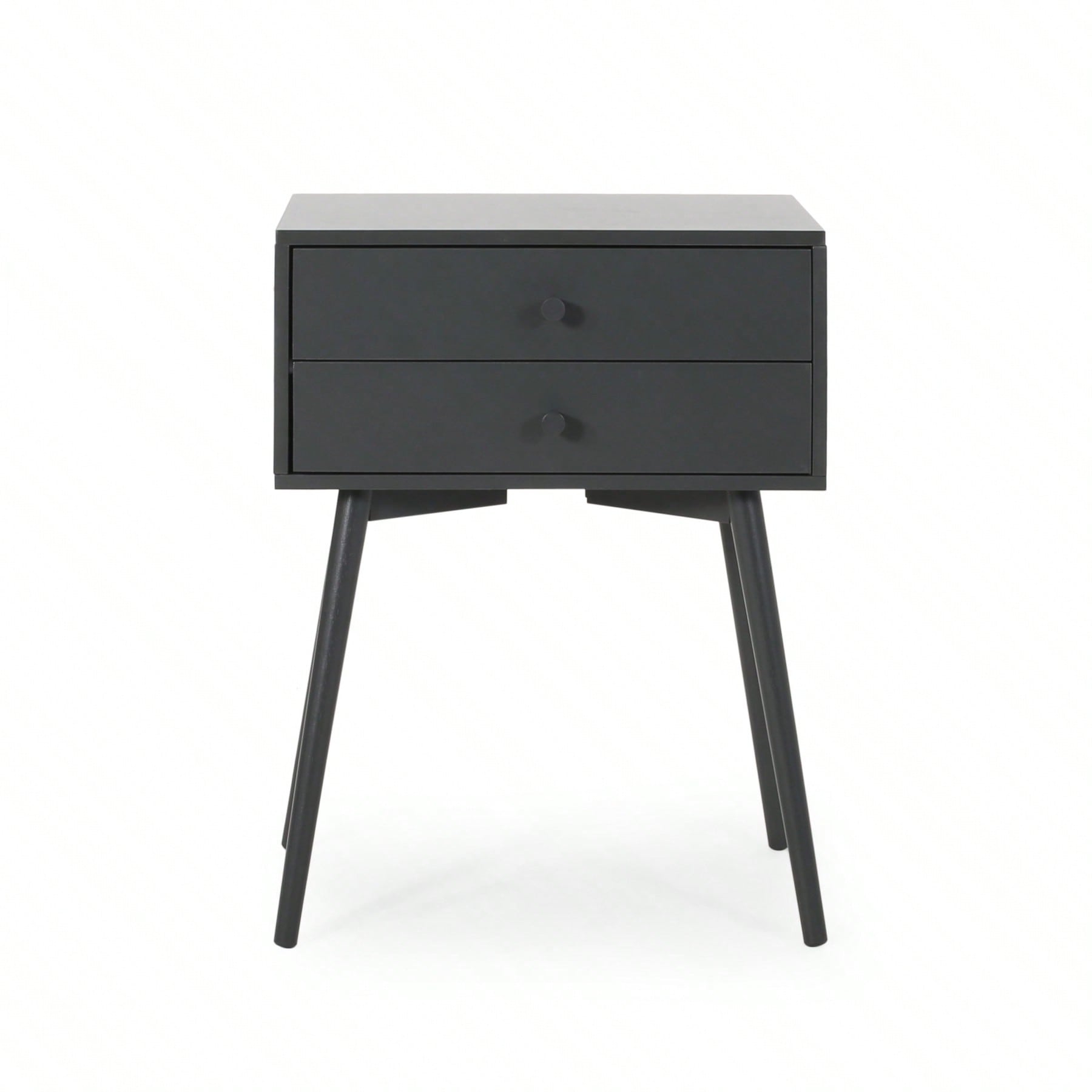 Mid-Century Modern Rubberwood Side Table With Two Drawers - Stylish And Functional End Table