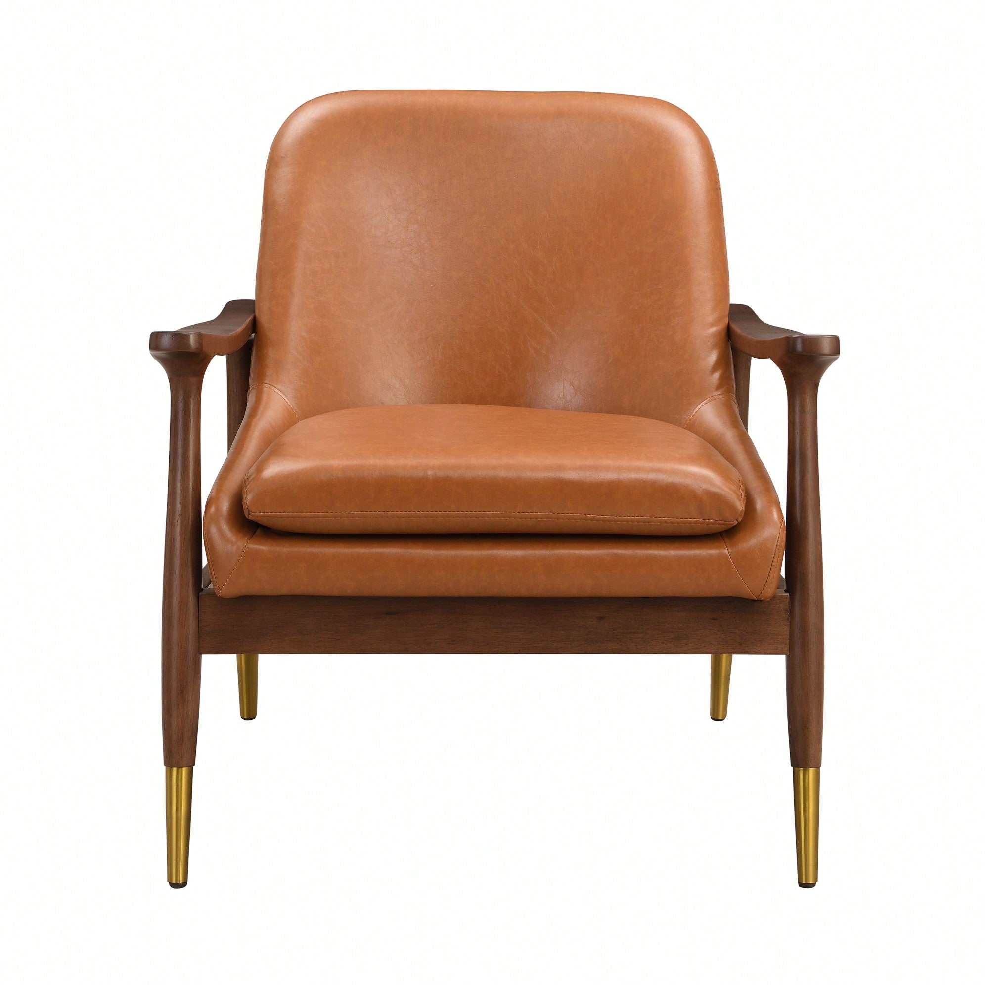 Mid-Century Modern Faux Leather Accent Chair with Cushioned Seat Solid Wood Frame Brass-Tipped Legs Perfect for Living Room Bedroom Office