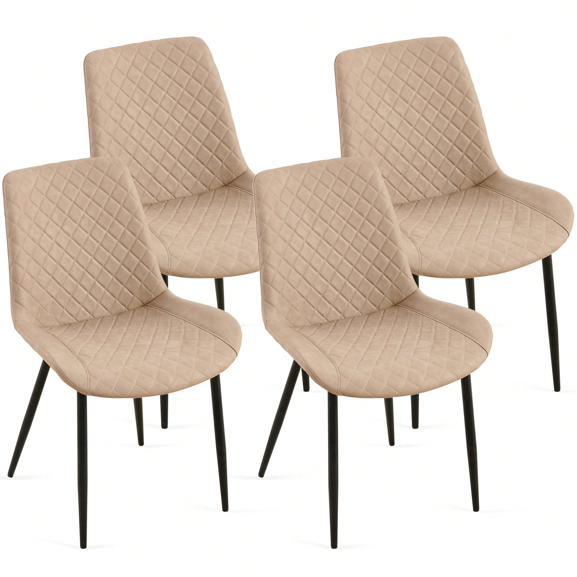 Mid-Century Modern PU Leather Dining Chairs Set Of 4 Armless Side Chairs With Metal Legs For Kitchen And Living Room Beige
