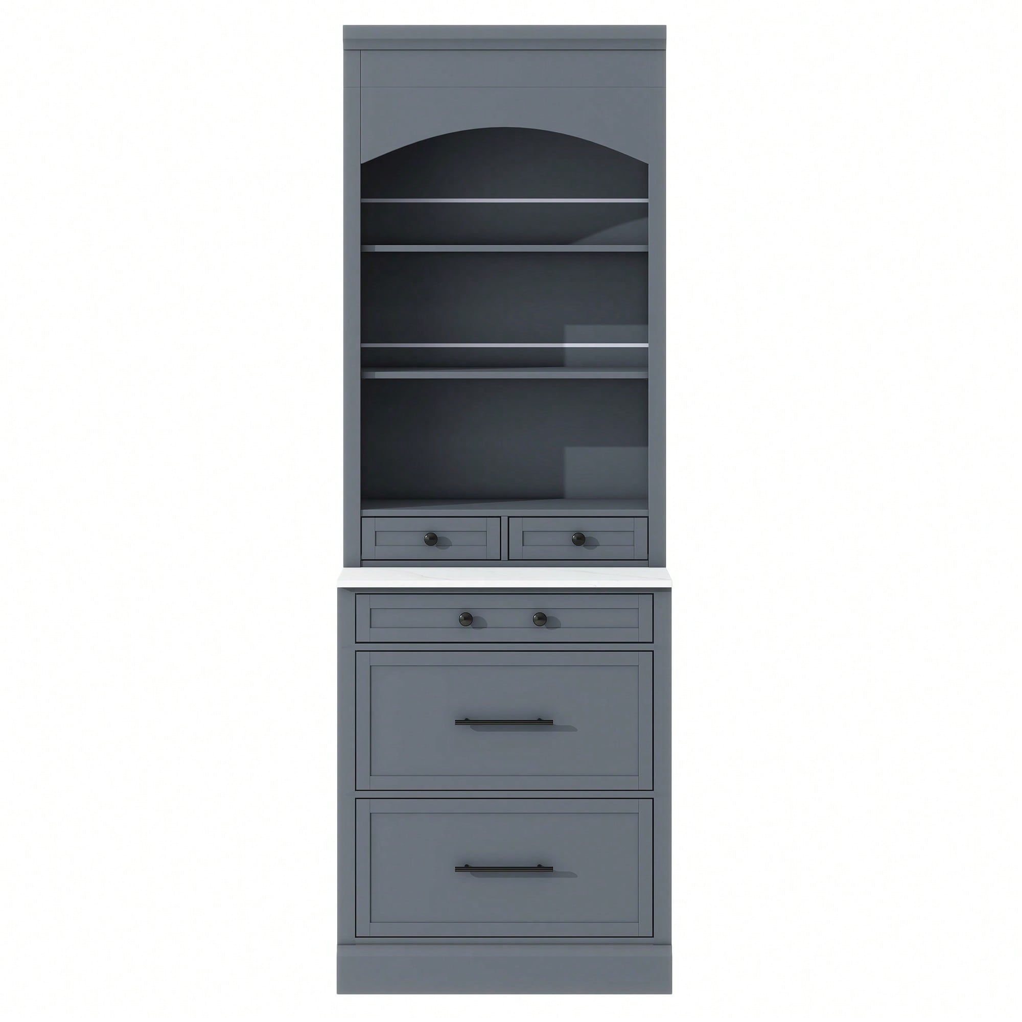 Modern 83.7inch High Freestanding Kitchen Pantry With Faux Marble Top And Adjustable Shelf, Tall Display Cabinet With 5 Storage Drawers In Gray
