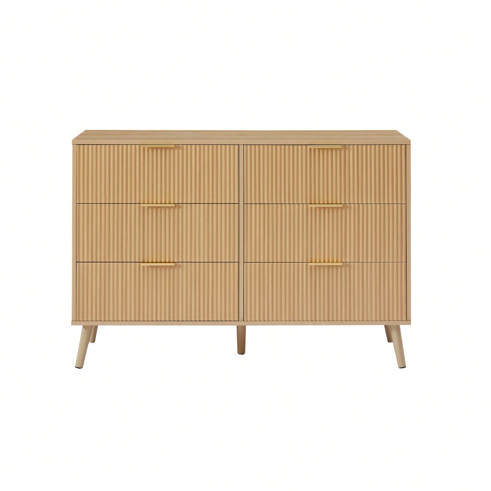 Modern Bedroom Dresser With 6 Wavy Drawers, Wood Chest Of Drawers For Bedroom, Living Room, Entryway Hallway Storage Organizer, 47.2" W