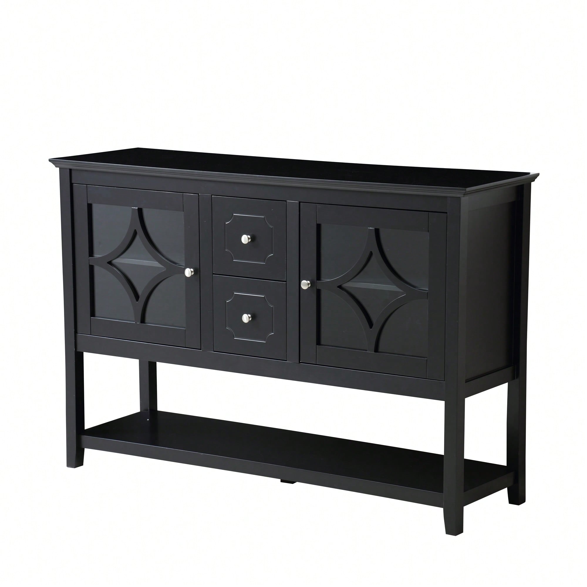Modern Black Sideboard Buffet Console Table With Adjustable Shelves For Media Storage