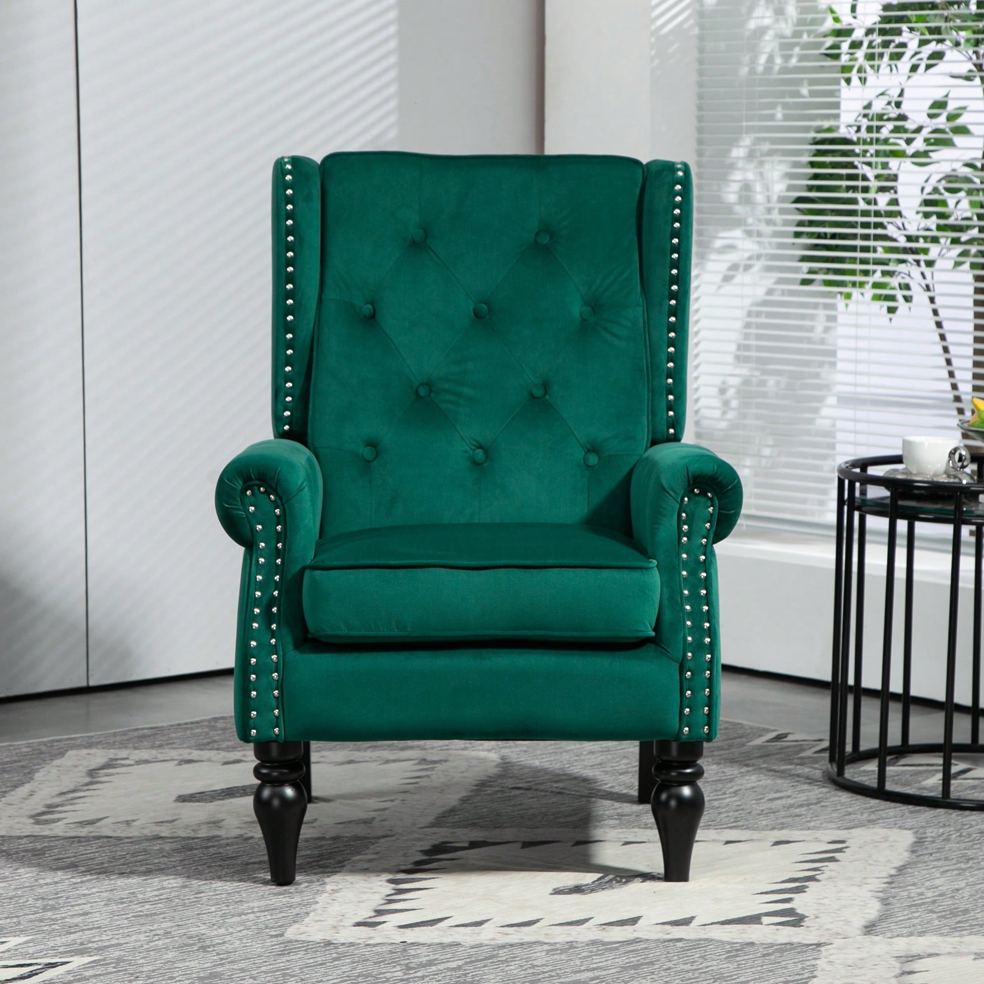 Modern Button Tufted Wingback Recliner Chair - Pushback Manual Living Room Seating, Fabric Single Reclining Sofa, Khaki Yellow