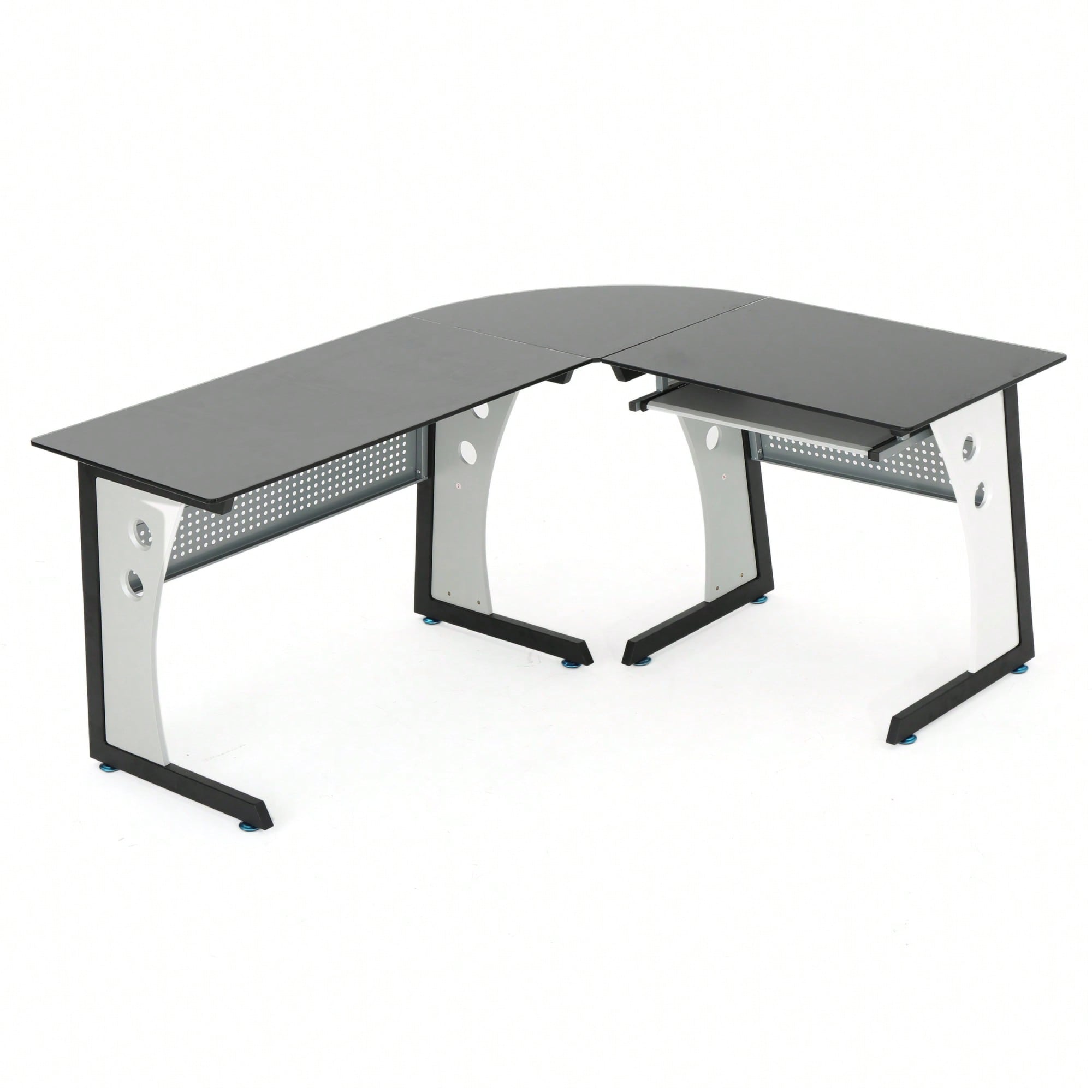 Modern L-Shaped Glass Office Desk For Stylish Workspace Organization
