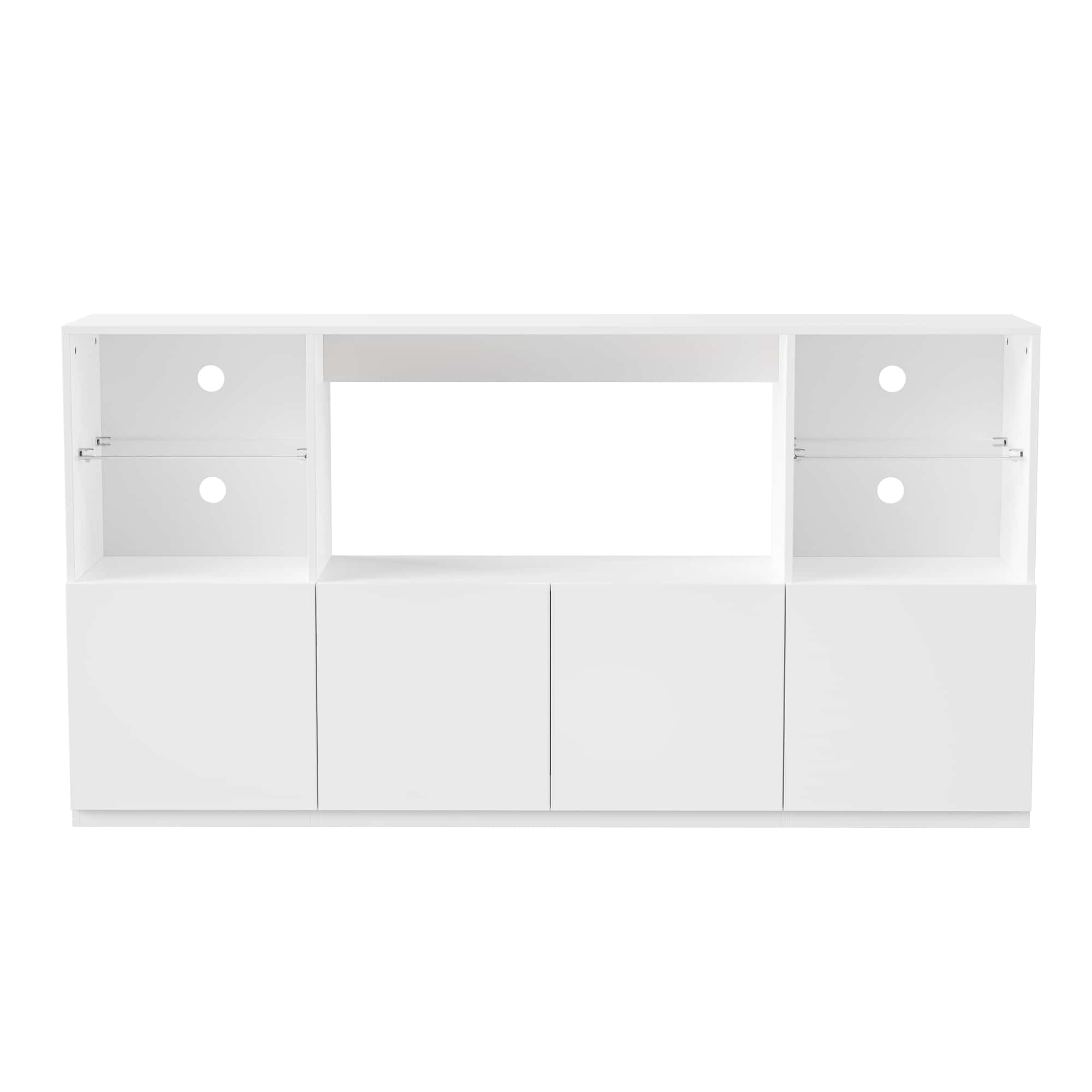 Modern High Gloss TV Stand With LED Lights And Tempered Glass Shelves For TVs Up To 75 Inches, Black Finish, 67Wx13.7D