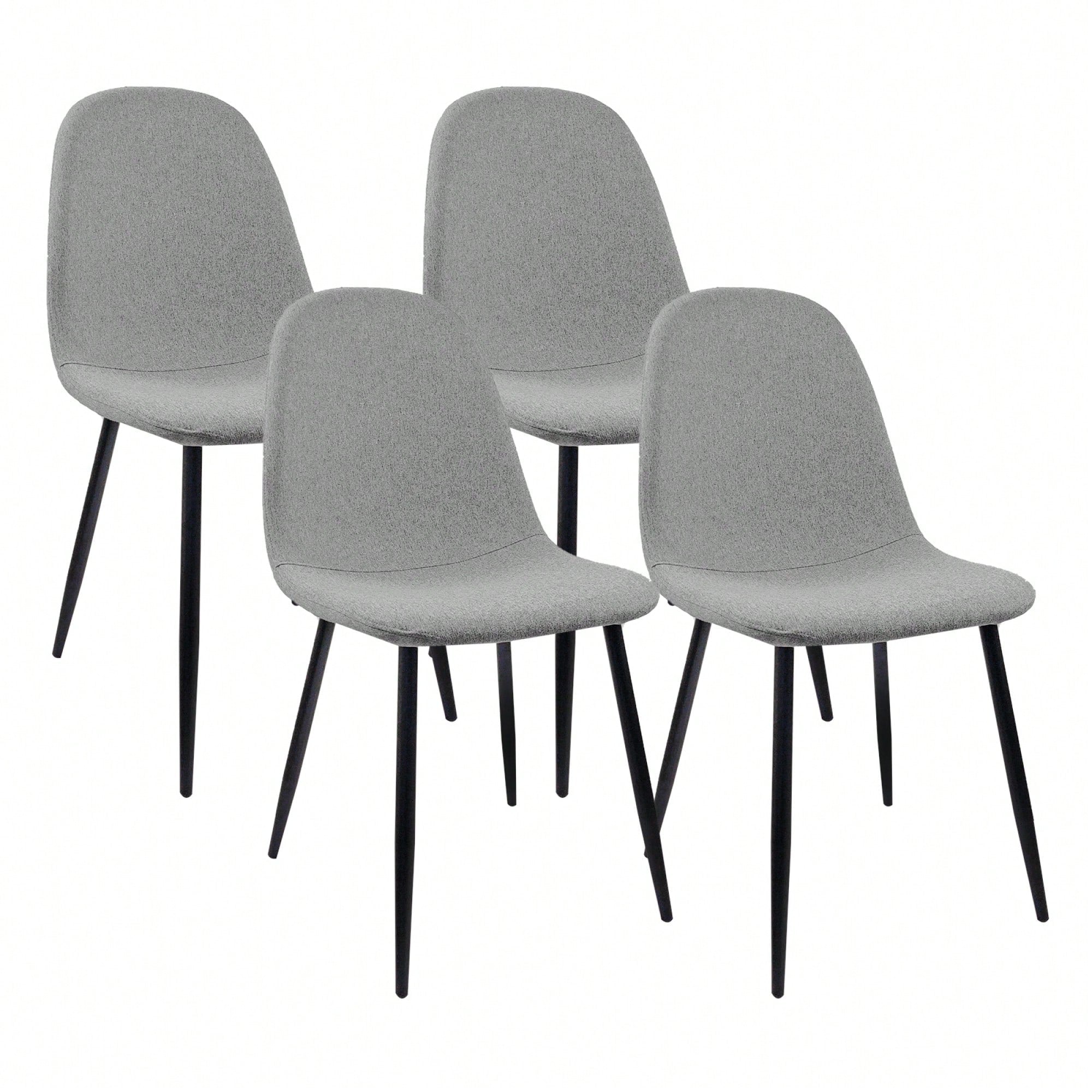 Modern Linen Fabric Dining Chairs Set Of 4 With Spoon Shape Design And Black Metal Legs For Kitchen And Dining Room - Beige Accent Chairs