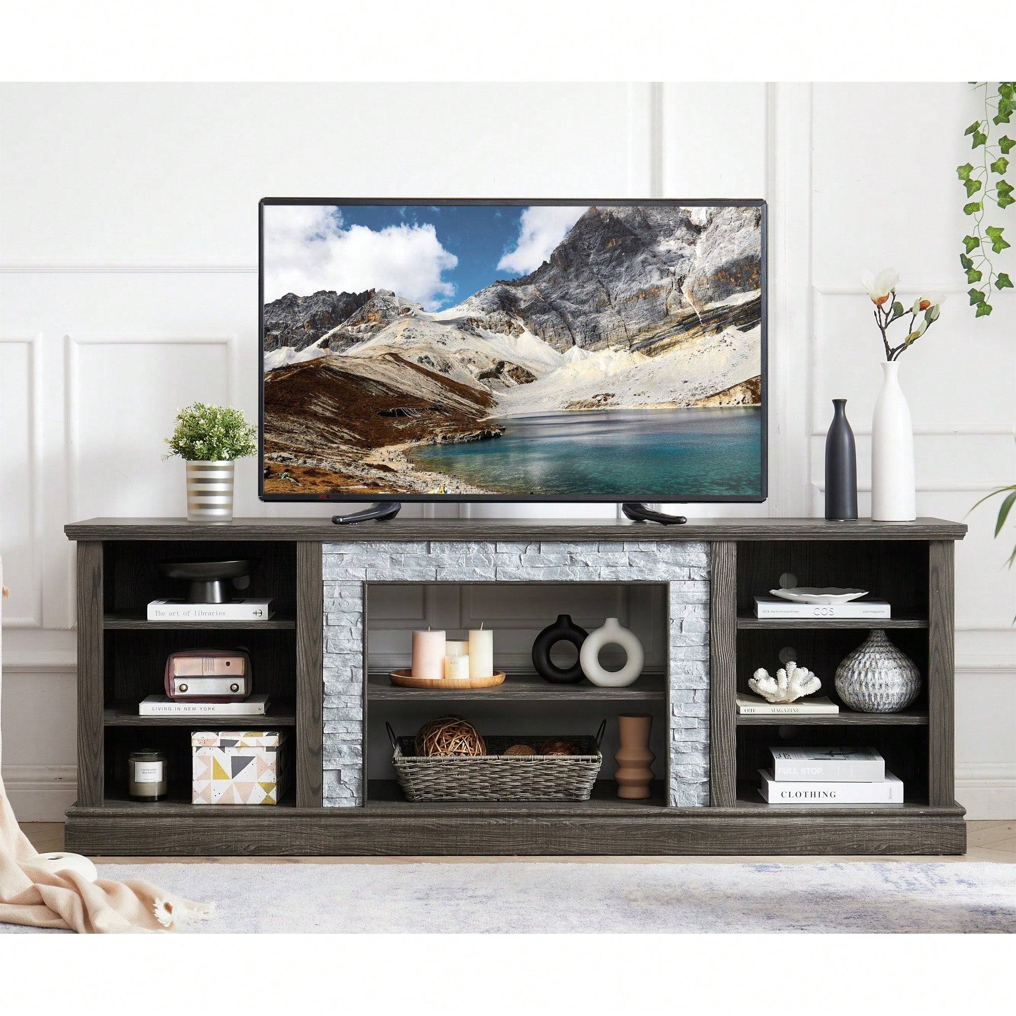 Modern Large TV Stand With Faux Stacked Stone Design And Ample Storage Space, 70.12" Wide Entertainment Center In Grey