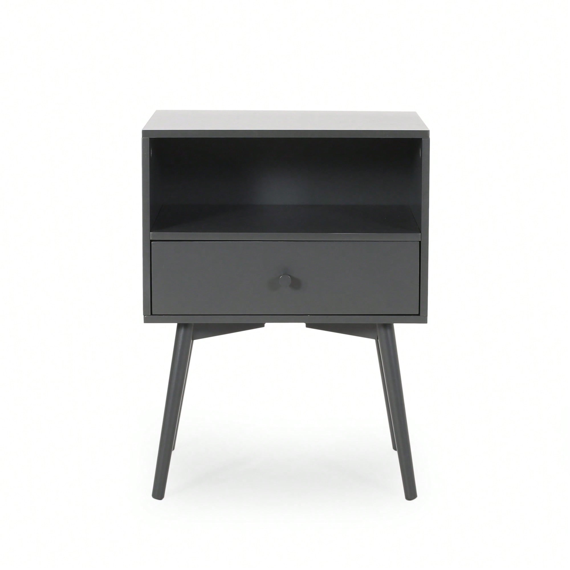 Modern Minimalist Night Stand With Storage Drawer And Open Shelf For Bedroom
