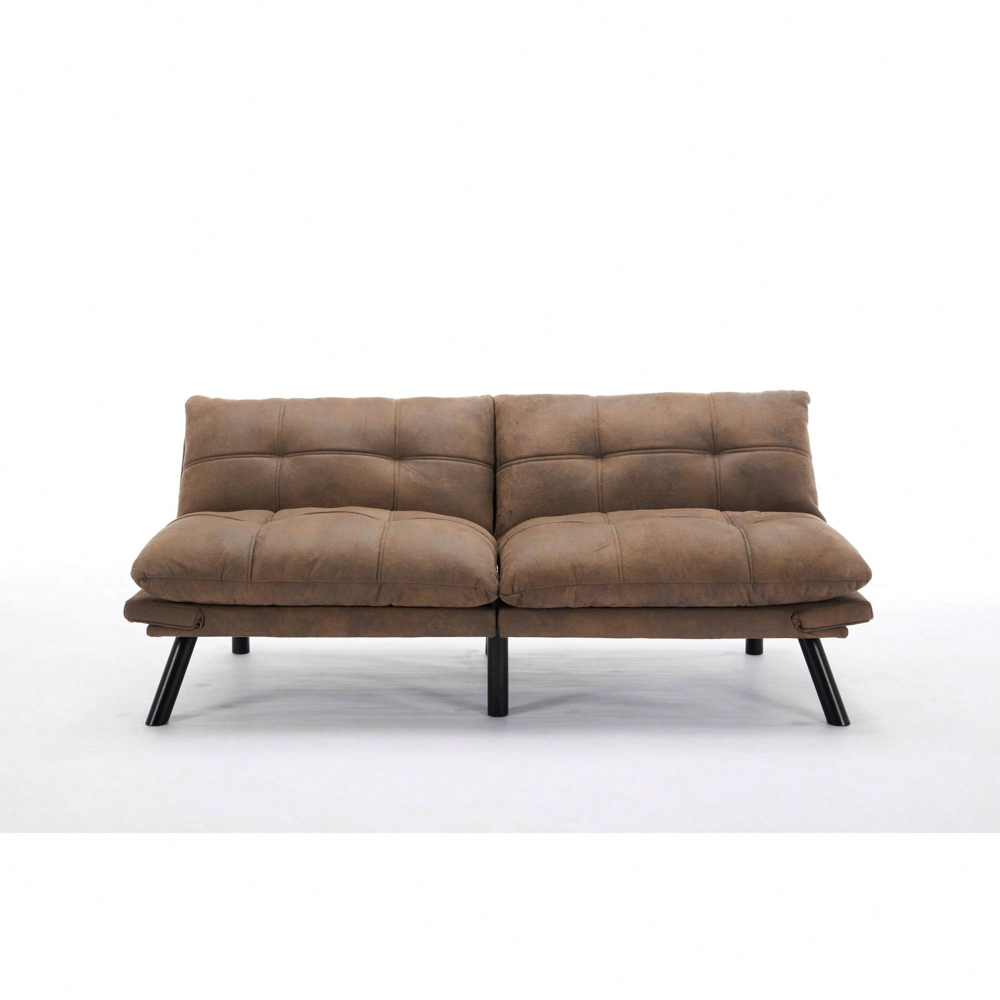 Convertible Single Sofa Bed Futon With Gold Metal Legs Teddy Fabric