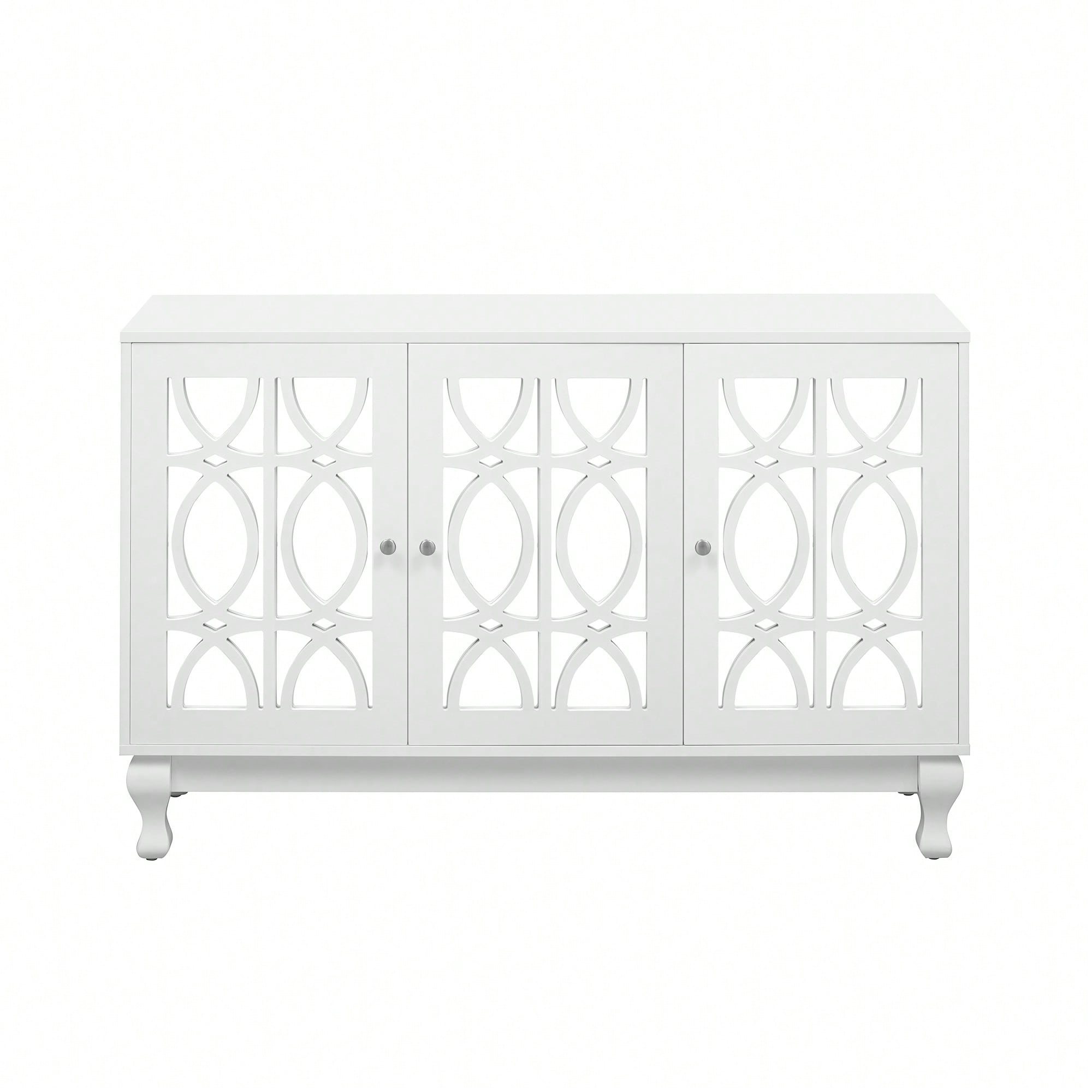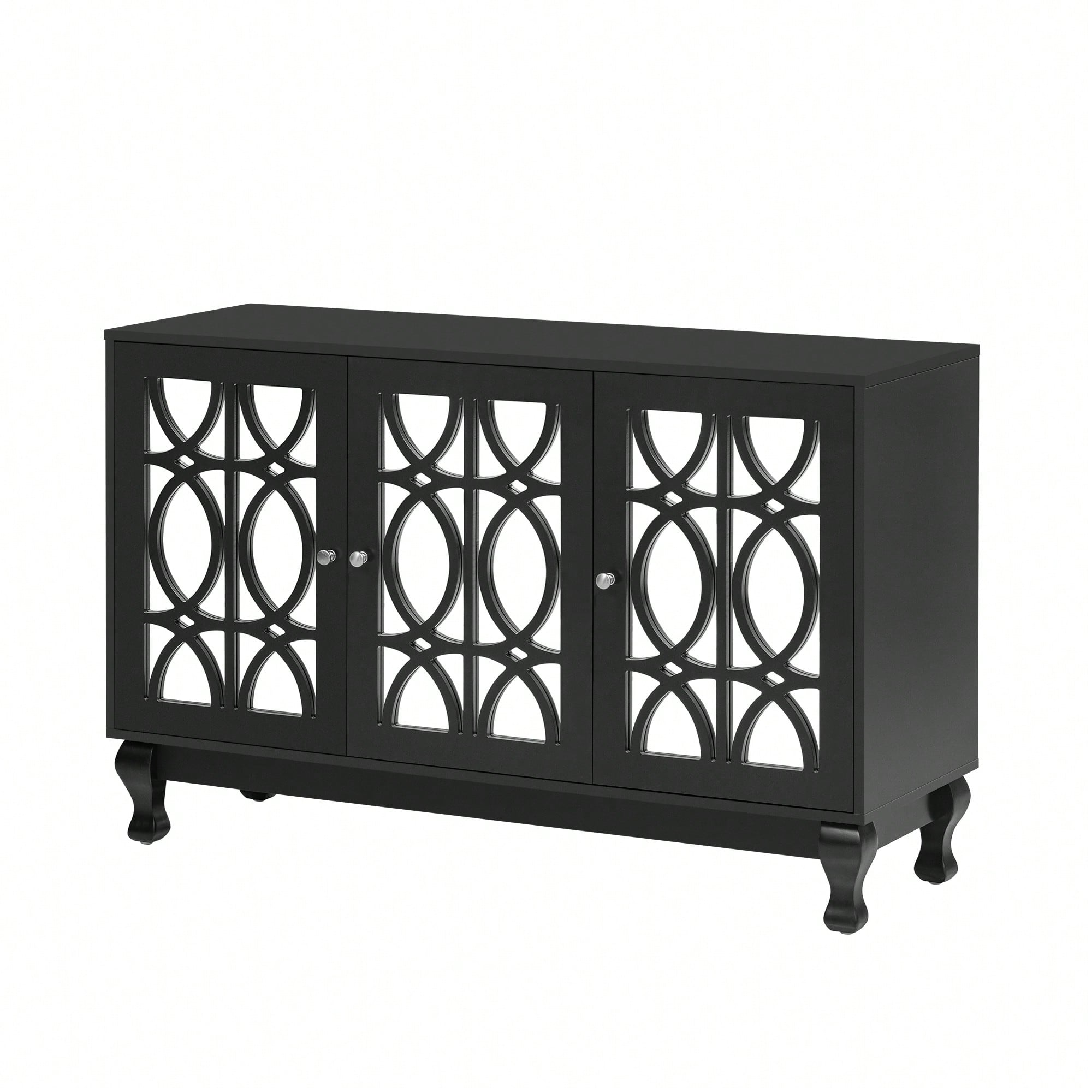 Modern Mirrored TV Stand For TVs Up To 55 Inches With Solid Wood Legs And Metal Handle, Features 3 Adjustable Shelves For Living Room Decor