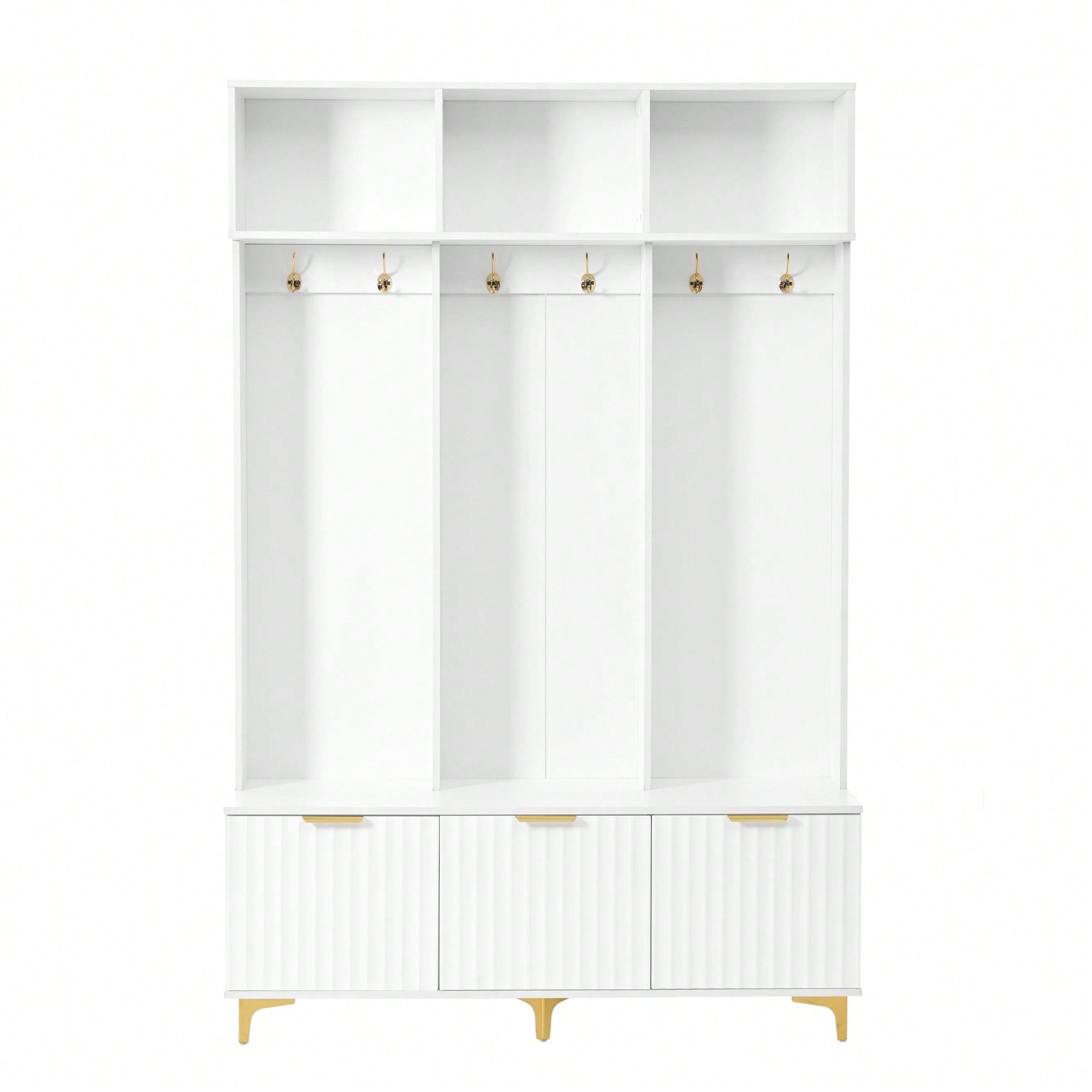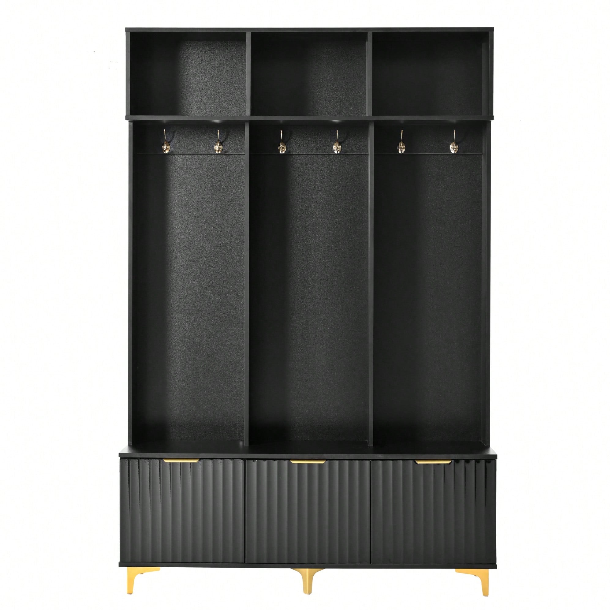 Modern Multifunctional Hallway Coat Rack and Entryway Bench with 24 Shoe Cubbies and Ample Storage Space