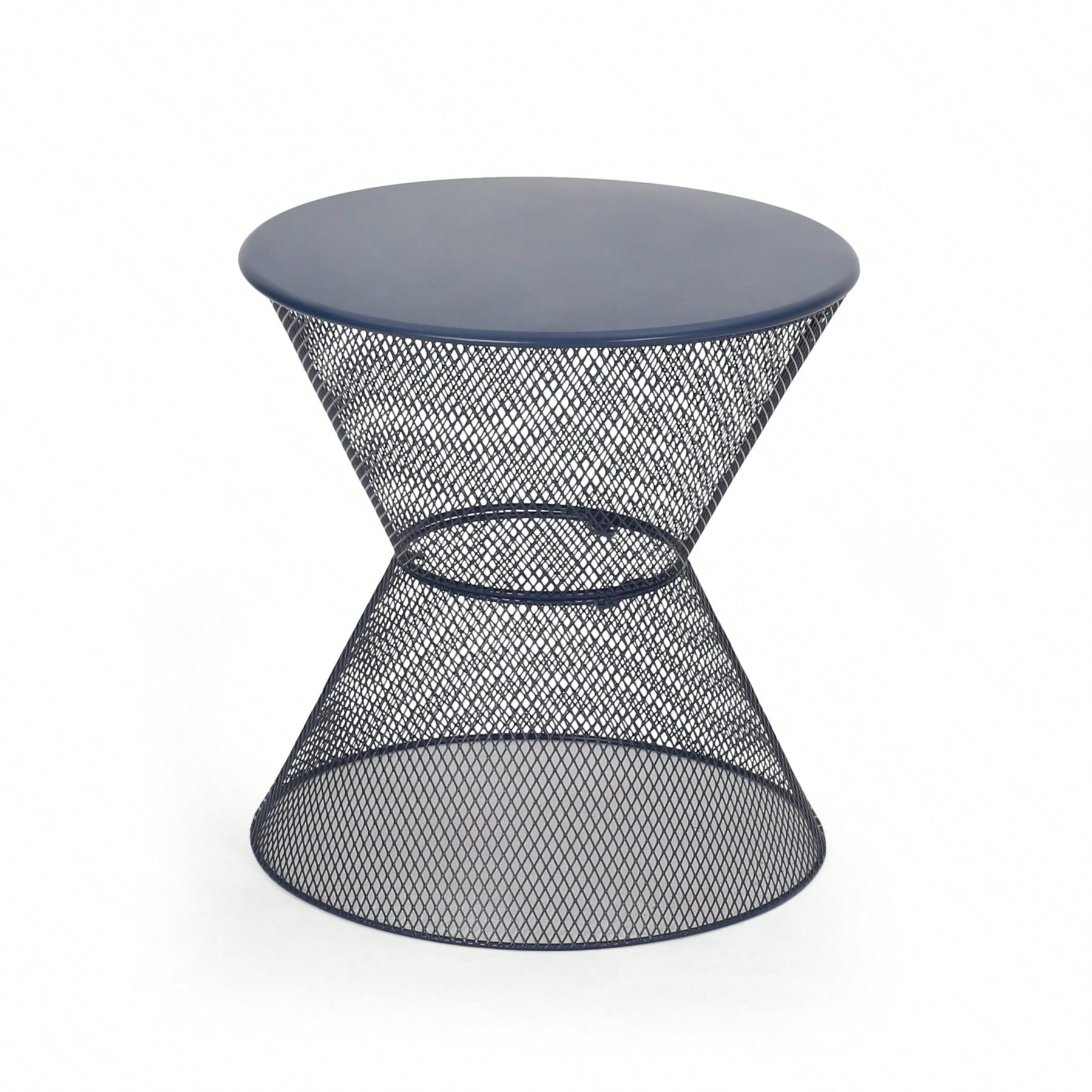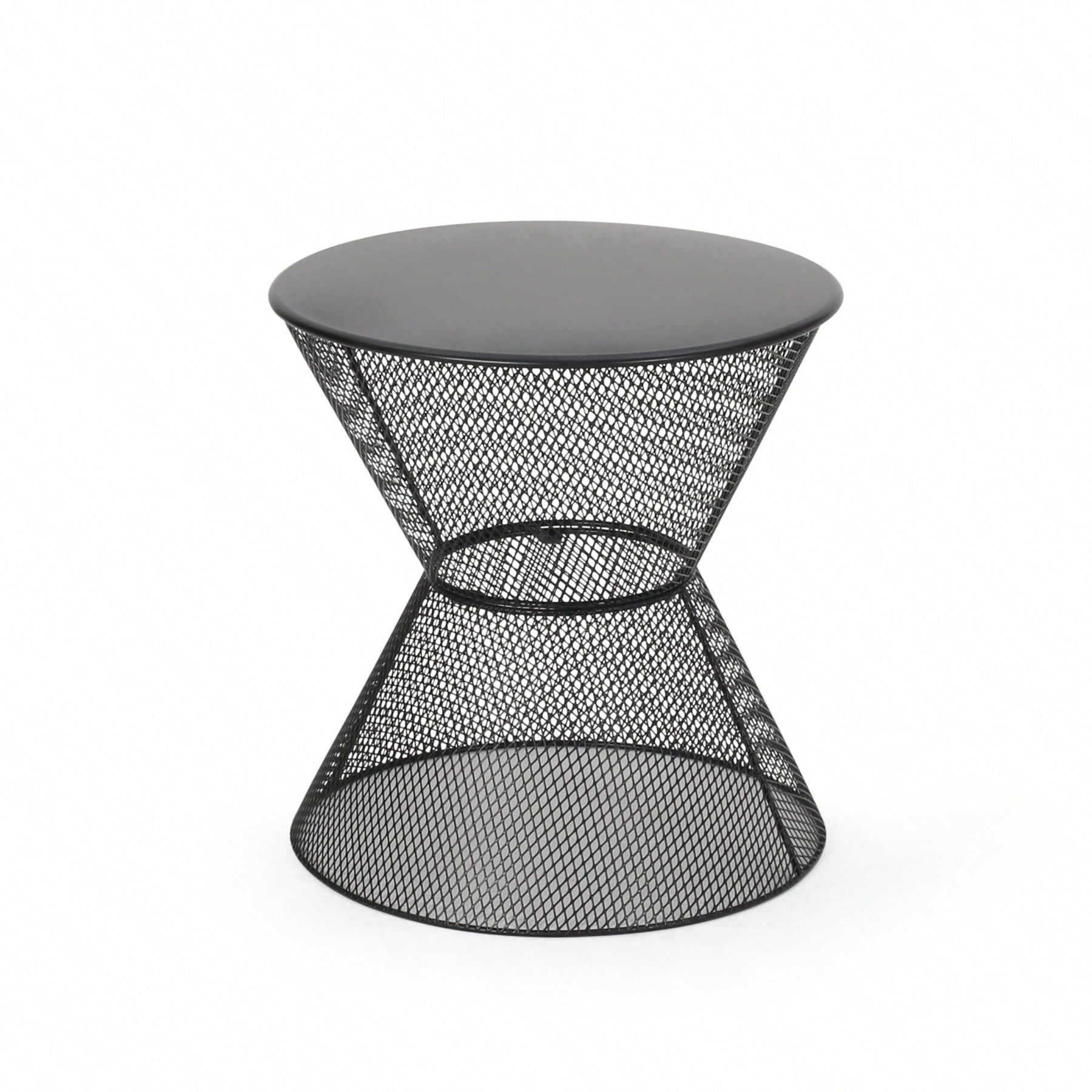 Modern Outdoor Hourglass Mesh Side Table with Iron Frame for Patio Garden Poolside Drinks and Snacks
