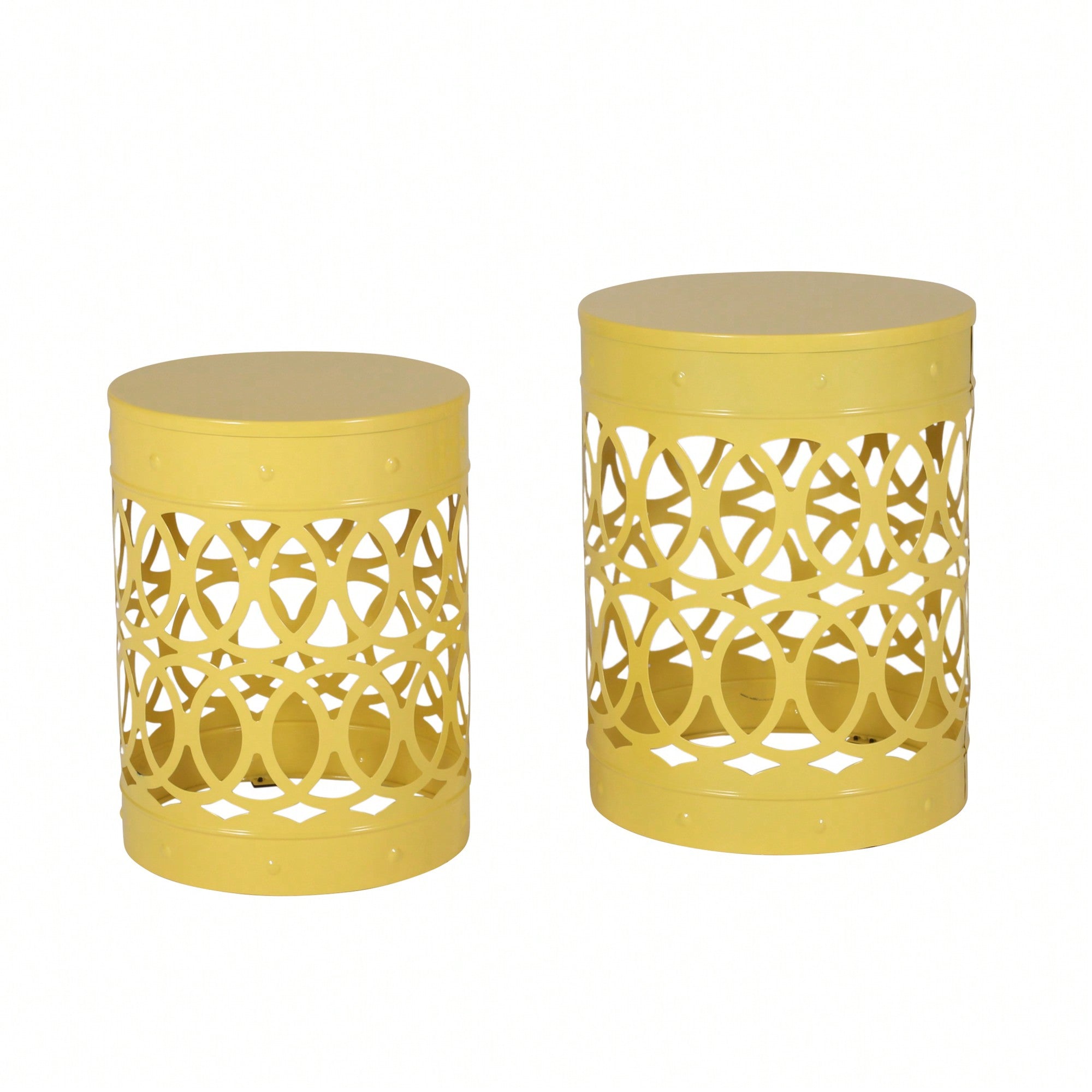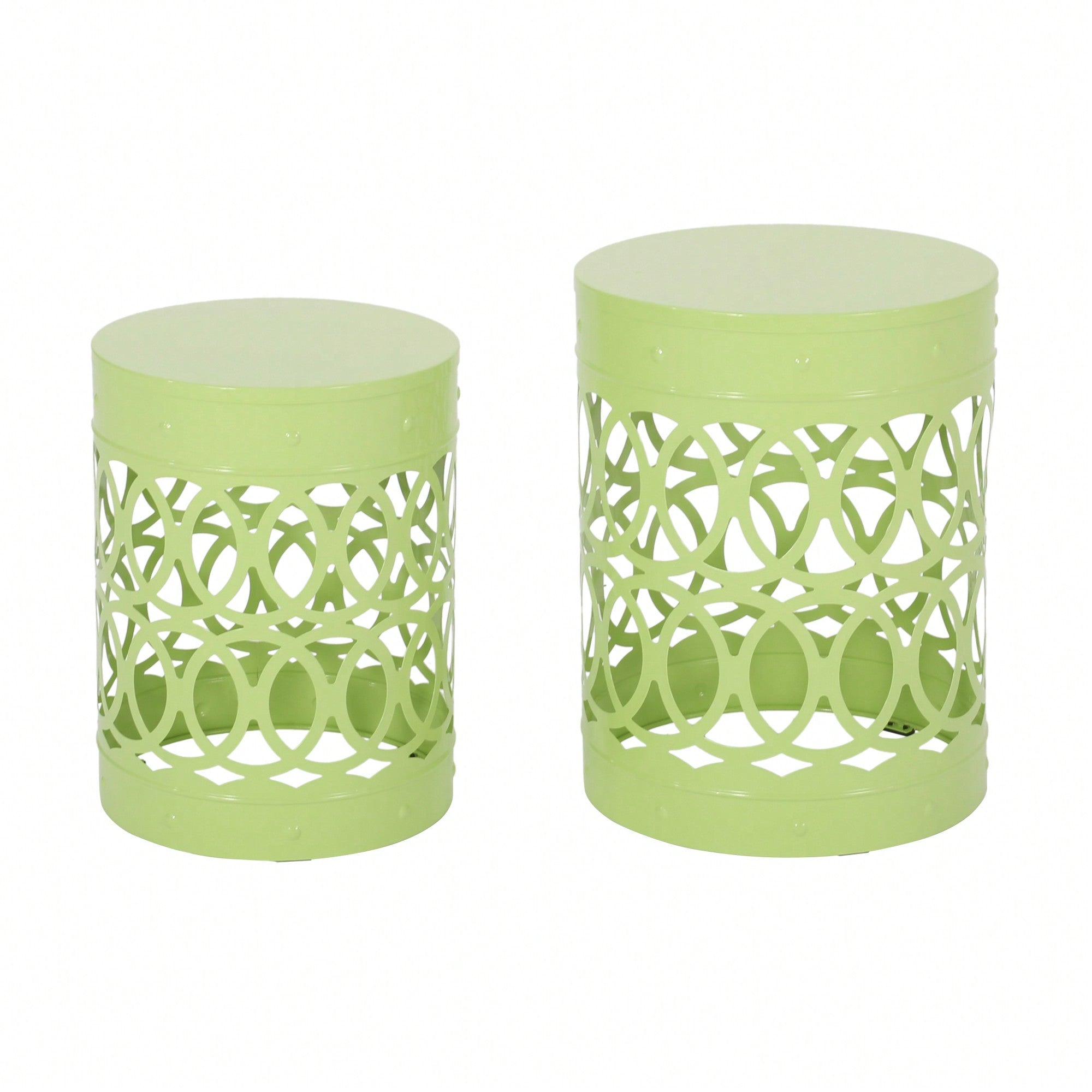 Modern Outdoor Metal Set Of 2 End Tables For Patio And Garden Use