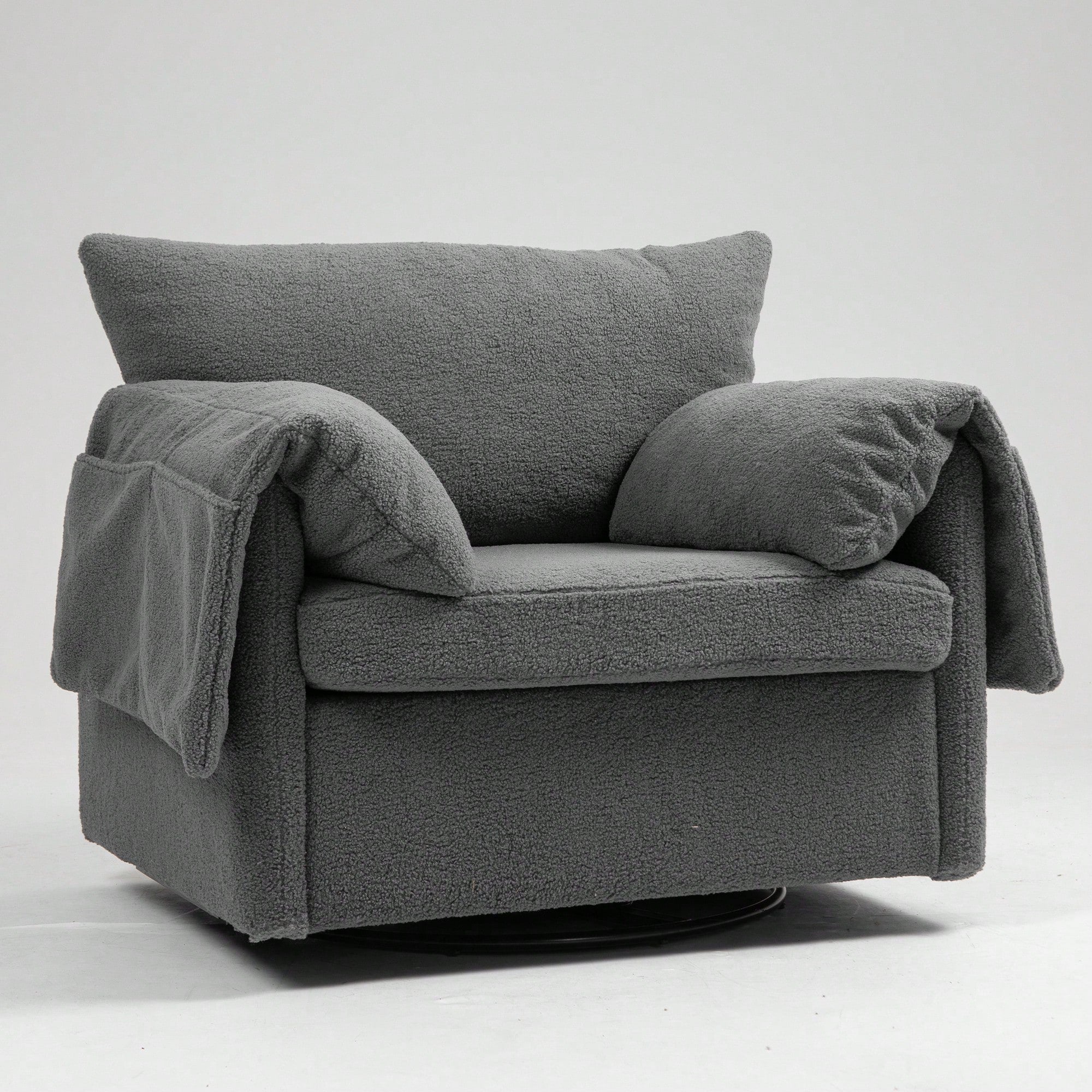 Regular price $282.99 USDSale price $282.99 USD Regular priceUnit price per$532.99 USDSale Sold out**Key Features** - Oversized swivel chair with a sturdy metal base that rotates 360° - Plush teddy fabric upholstery for premium comfort and stain resistance -...