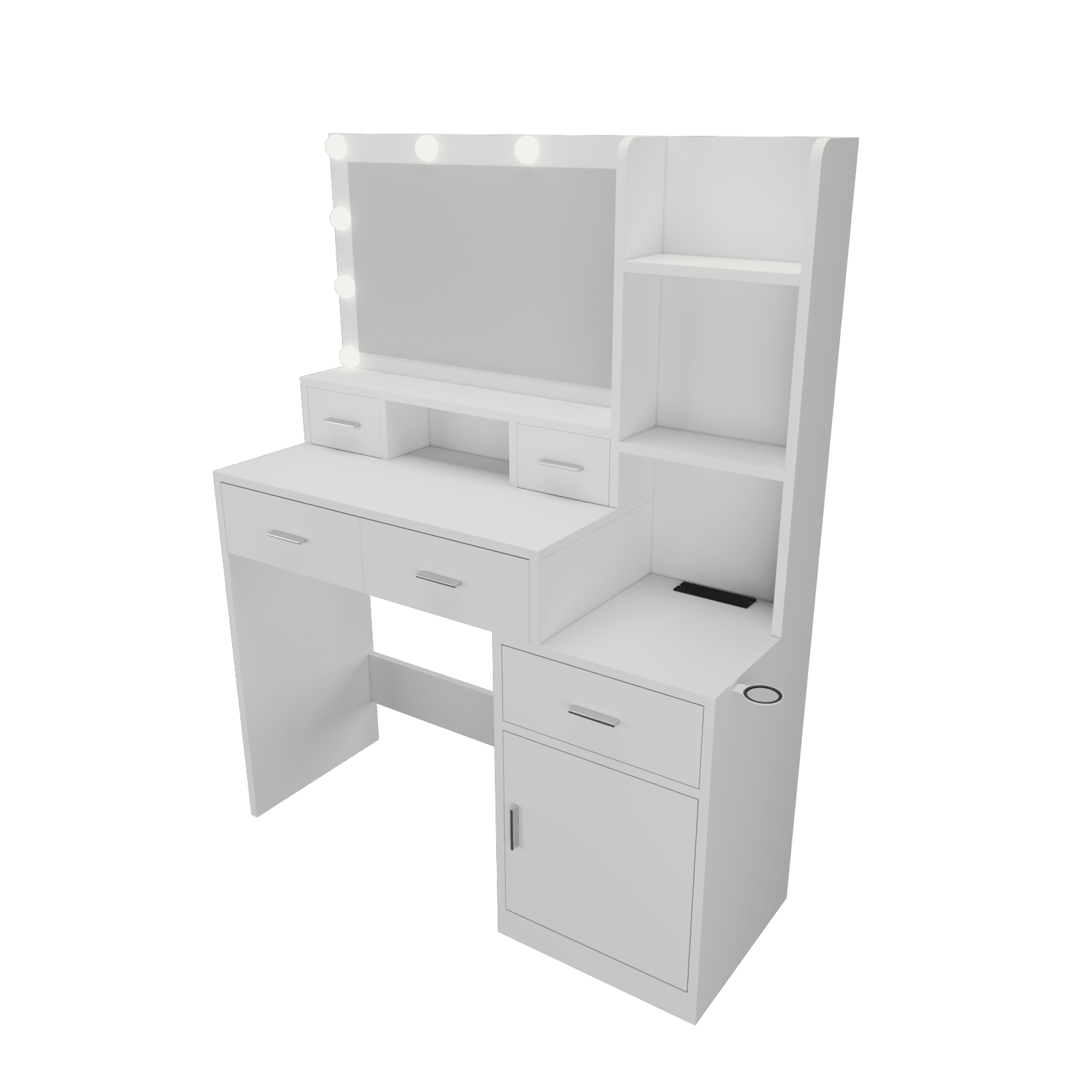 Regular price From $190.99 USDSale price From $190.99 USD Regular priceUnit price per$405.99 USDSale Sold out1.Smart mirror dressing table with ample storage including 3 open shelves, 1 hidden shelf, and 5 drawers for organized cosmetics and accessories 2.Durable MDF board construction...