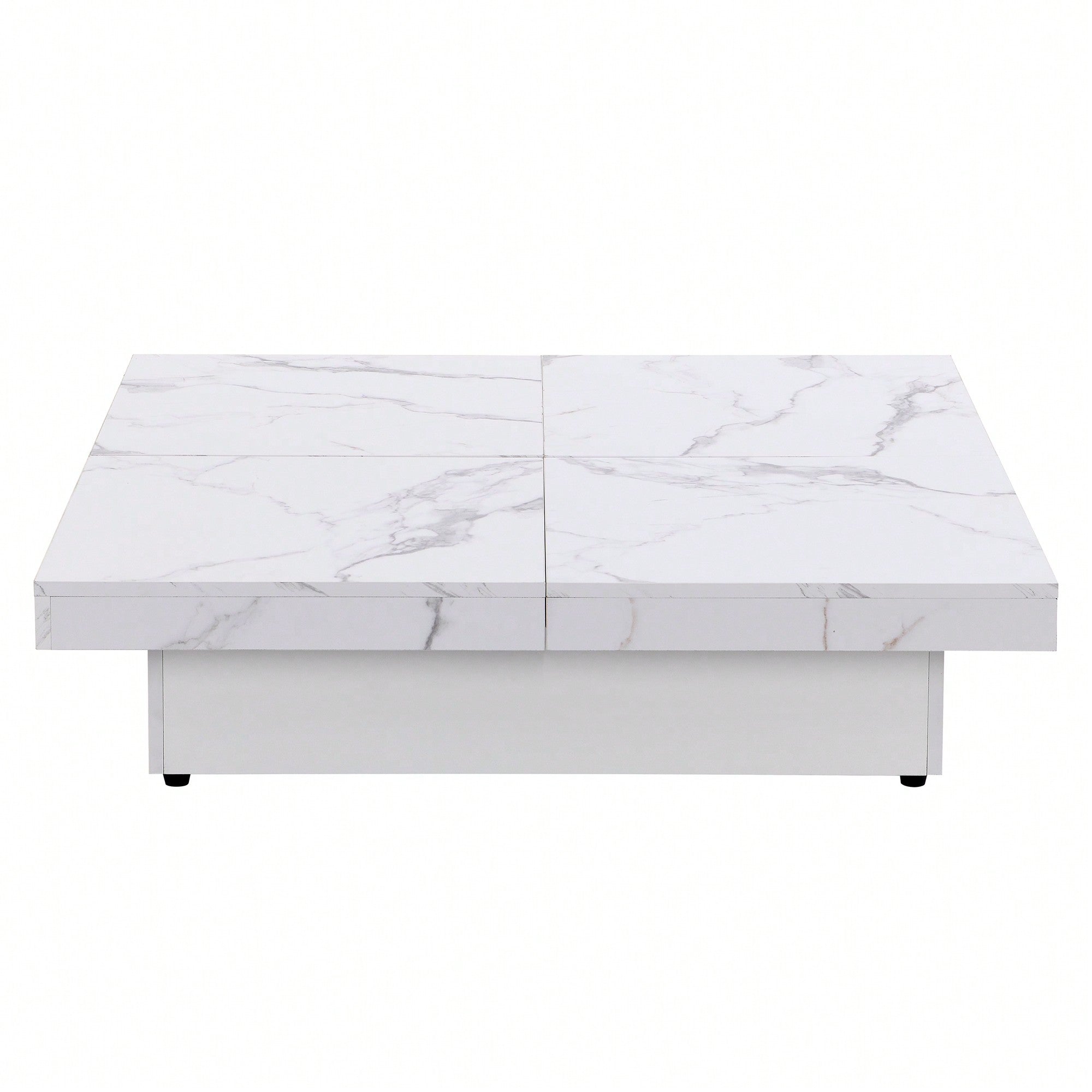 Modern Square Marble Veneer Coffee Table With Sliding Storage Top In White 39.4 Inches
