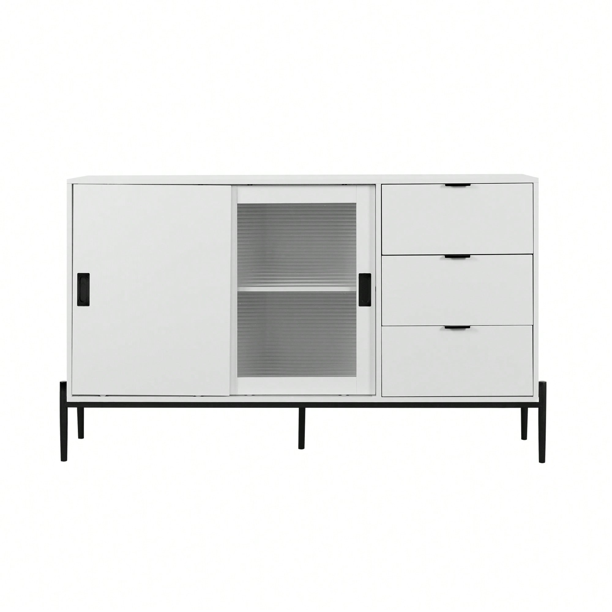 Modern Storage Cabinet With Glass Sliding Doors And 3 Drawers For Entryway Kitchen Buffet And Home Décor