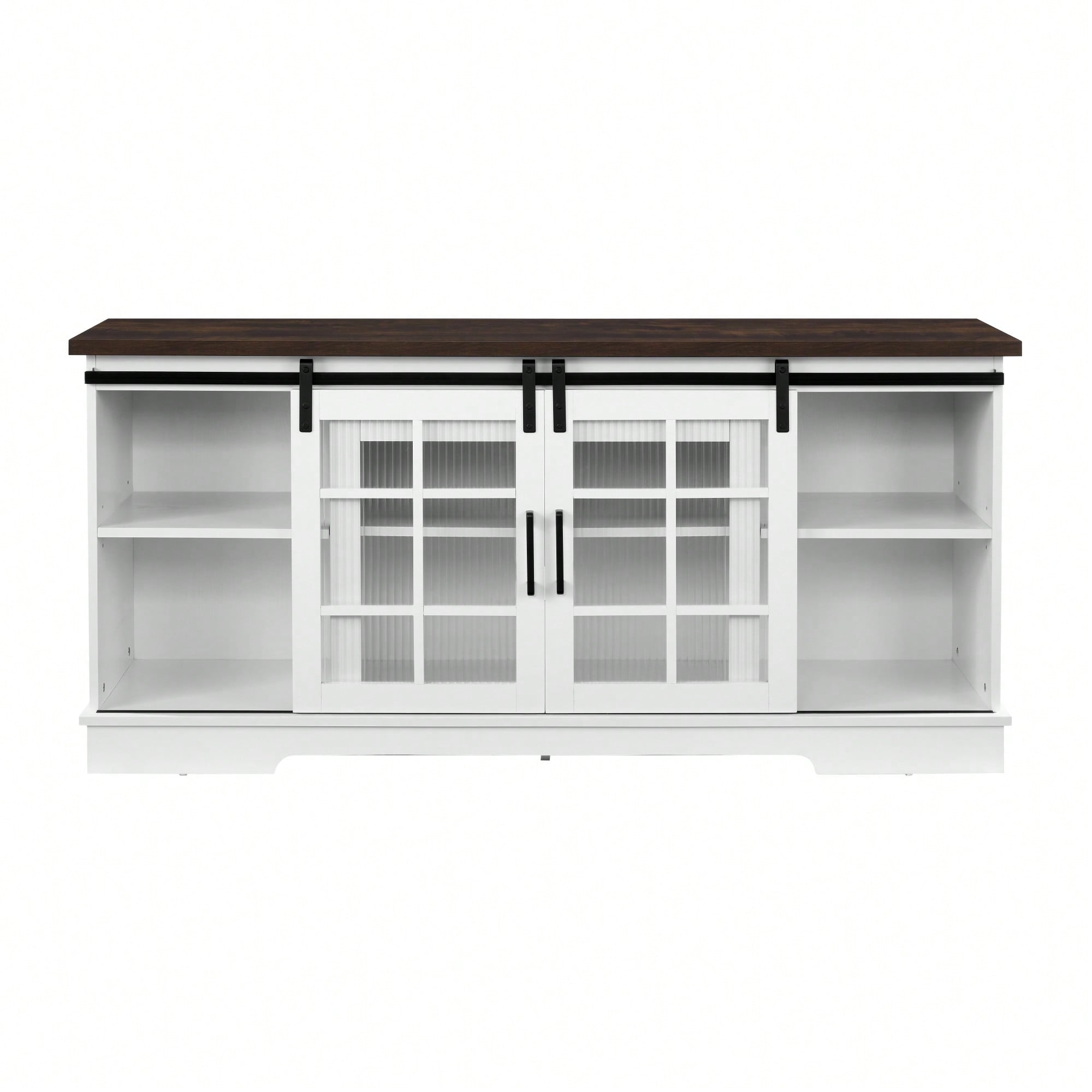 Multipurpose Sliding Door TV Cabinet With Adjustable Shelves For TVs Up To 65 Inches Large Storage Solution In White And Brown Finish