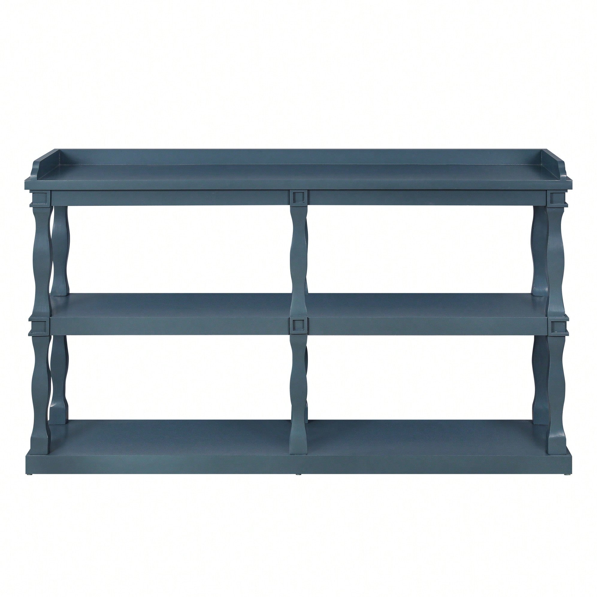Narrow Navy Blue Console Table With 3-Tier Open Storage And Roman Column Legs For Living Room Entryway Hallway