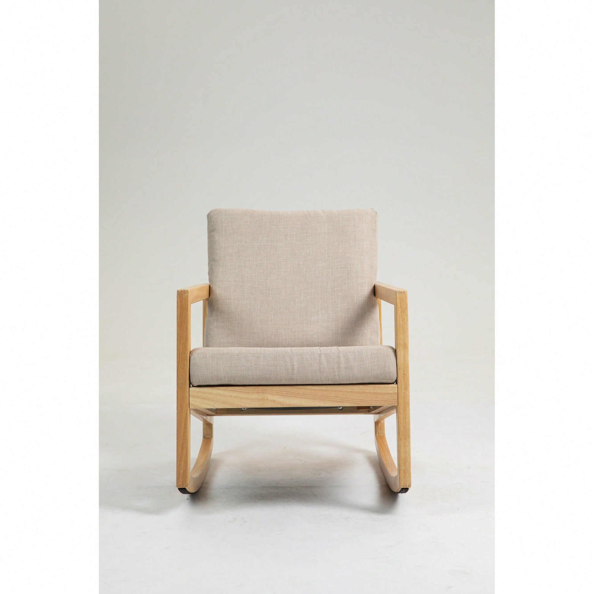 Natural Rubberwood Frame Khaki Upholstered Accent Glider Chair For Relaxation