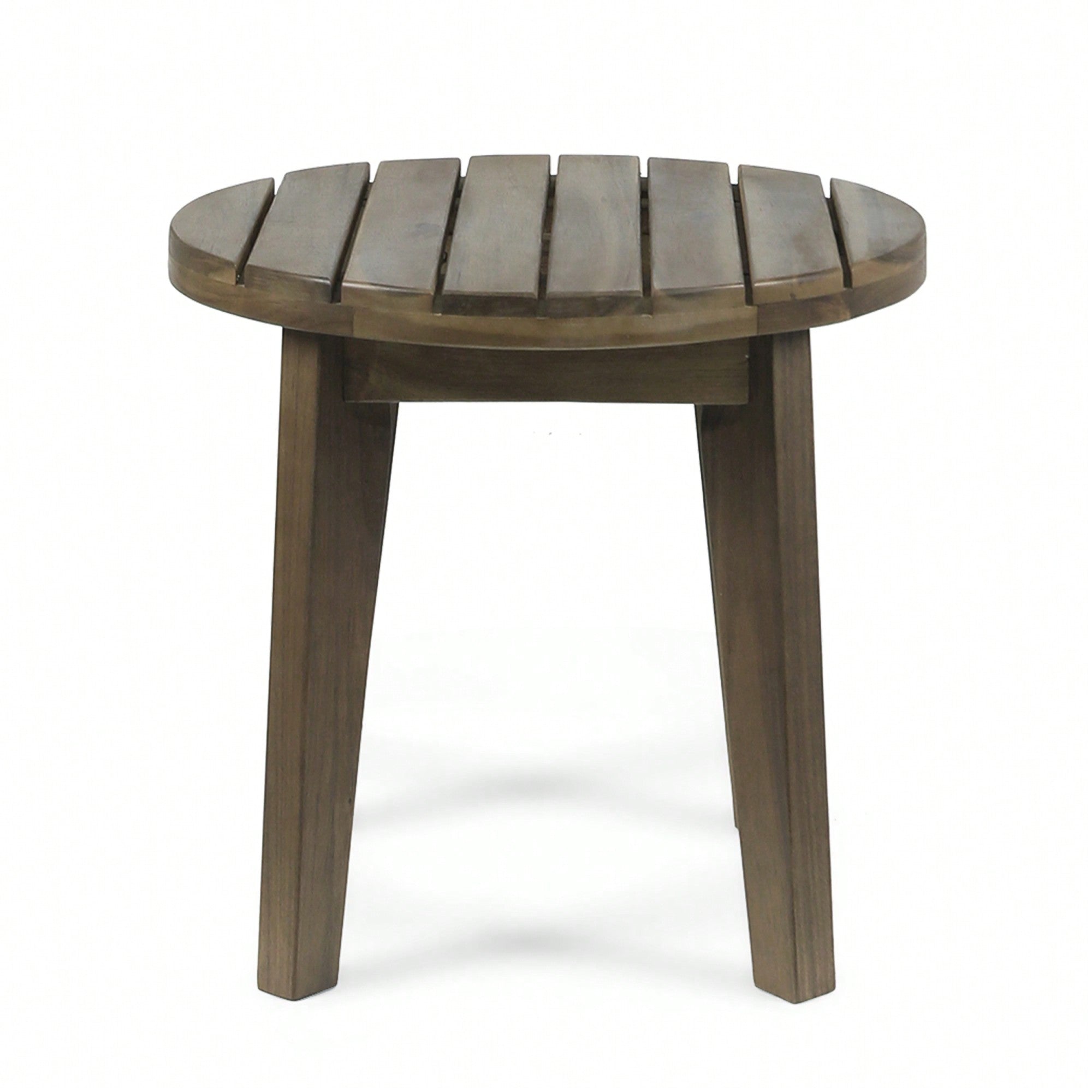 Outdoor Acacia Wood Side Table With Gray Finish For Patio And Backyard, Weather Resistant And Rustic Design, 16 Inch