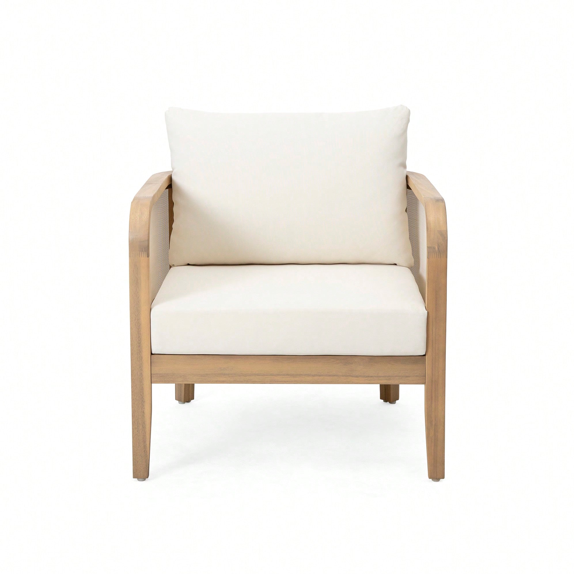 Outdoor Acacia Wood Patio Club Chair With Waterproof Thick Cushion Deep Seating, Lightweight Teak Finish Beige 400lbs Capacity