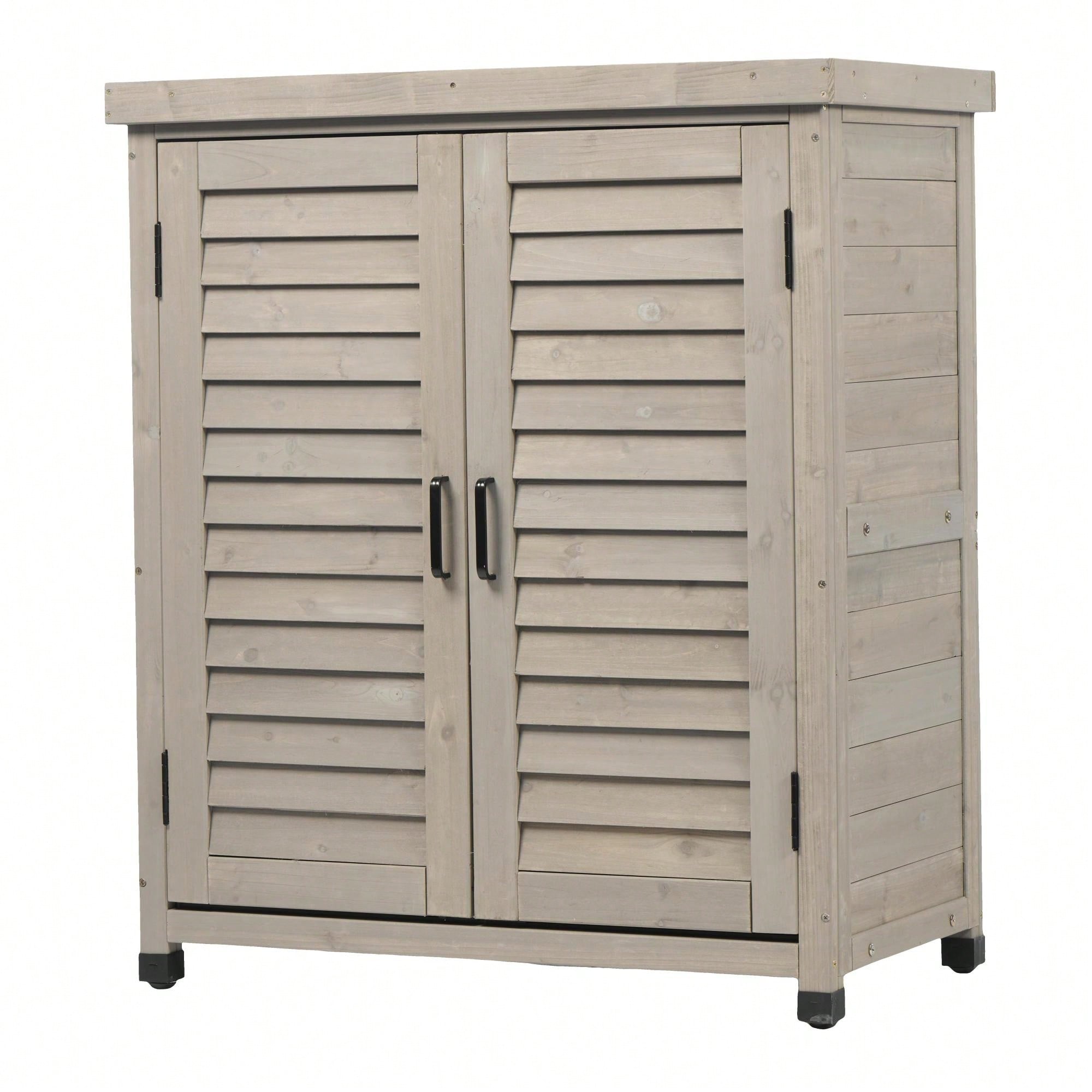 Outdoor Storage Cabinet, Garden Wood Tool Shed, Outside Wooden Shed Closet With Shelves And Latch