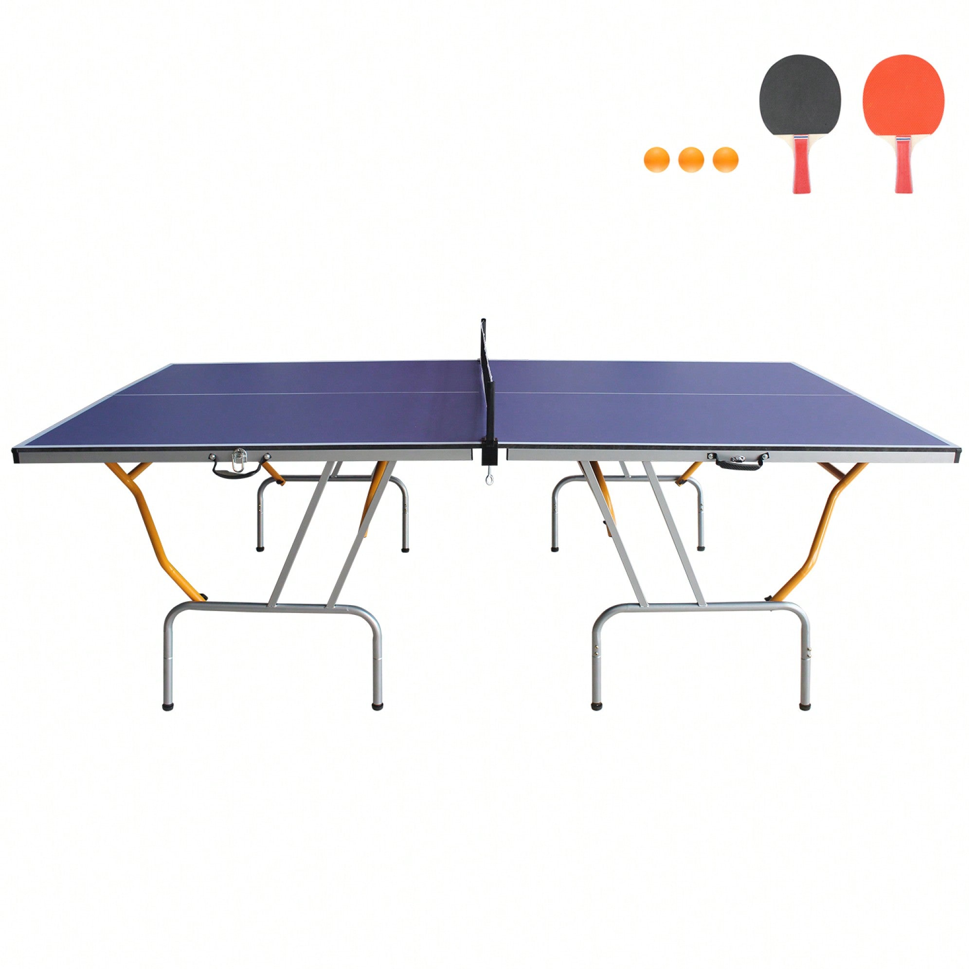 Portable 8ft Foldable Table Tennis Table Set For Indoor Outdoor Play With Net 2 Paddles And 3 Balls