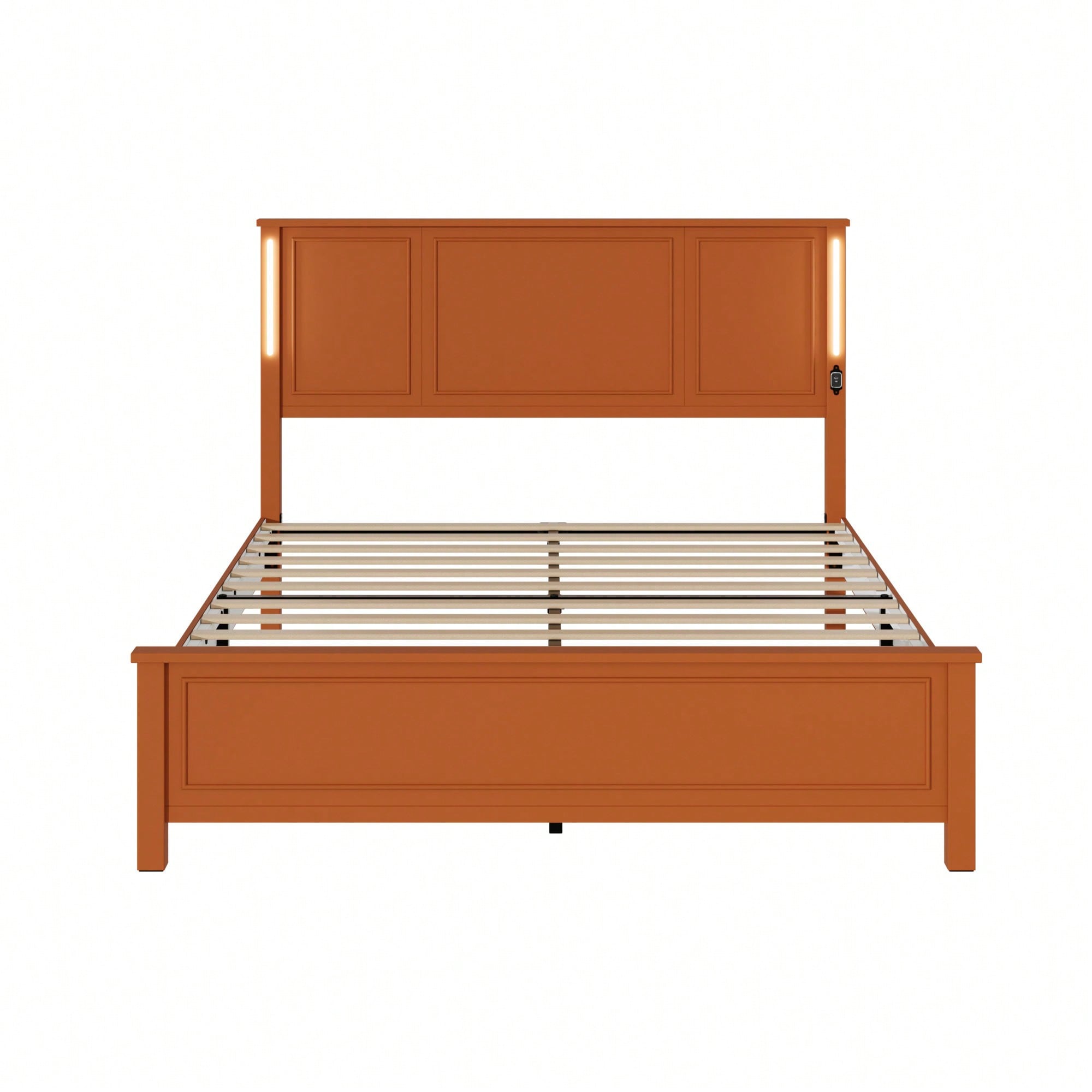 Queen Bed Frame Headboard And Charging Station, Wood Platform Bed, Sturdy And No Noise, No Box Spring Needed