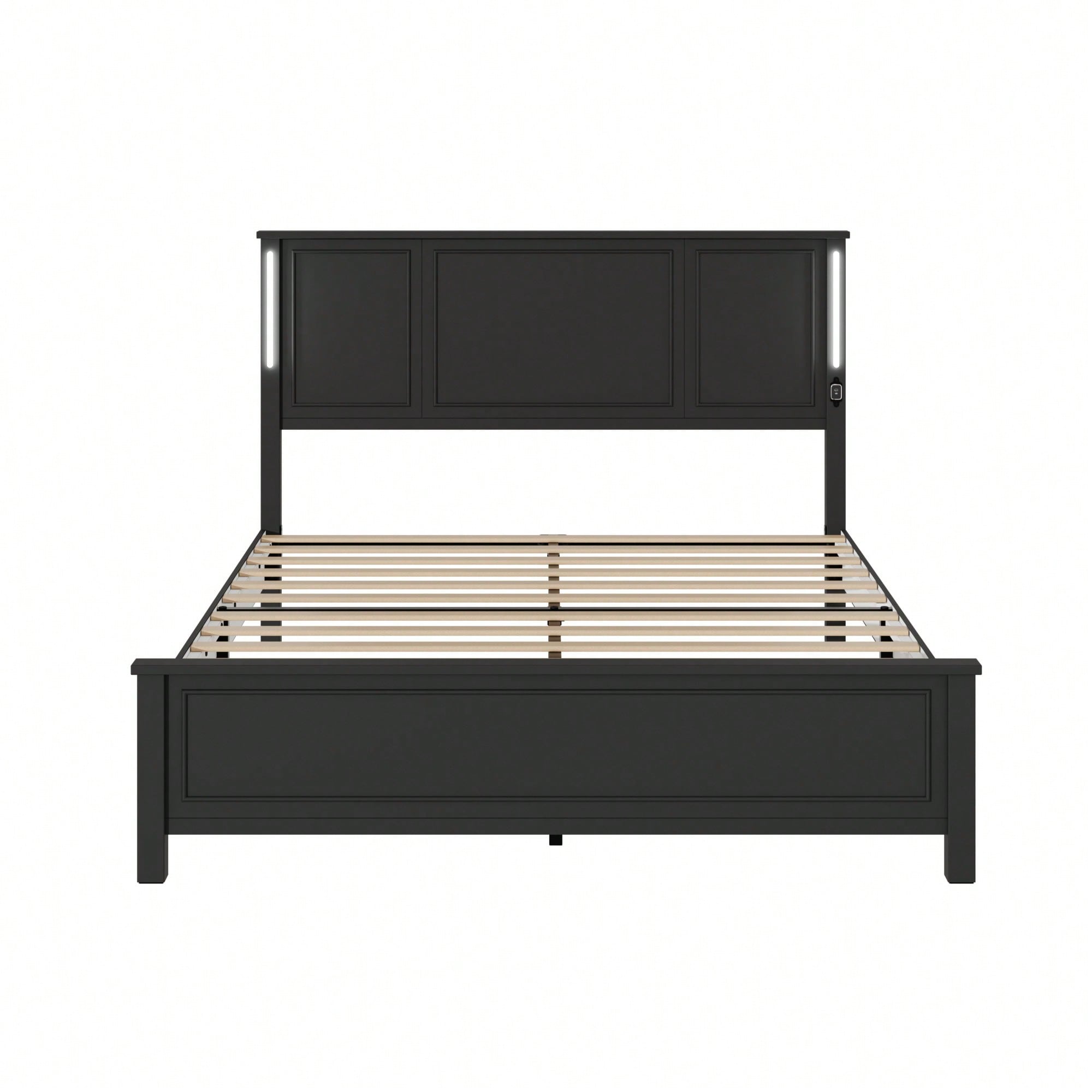Queen Platform Bed Frame with Storage Headboard LED Lights Charging Station Noise-Free Design Easy Assembly
