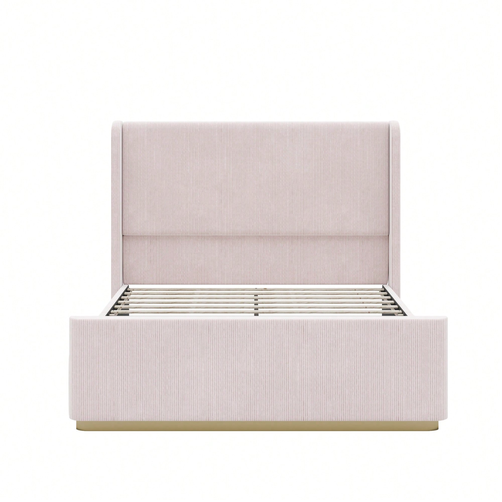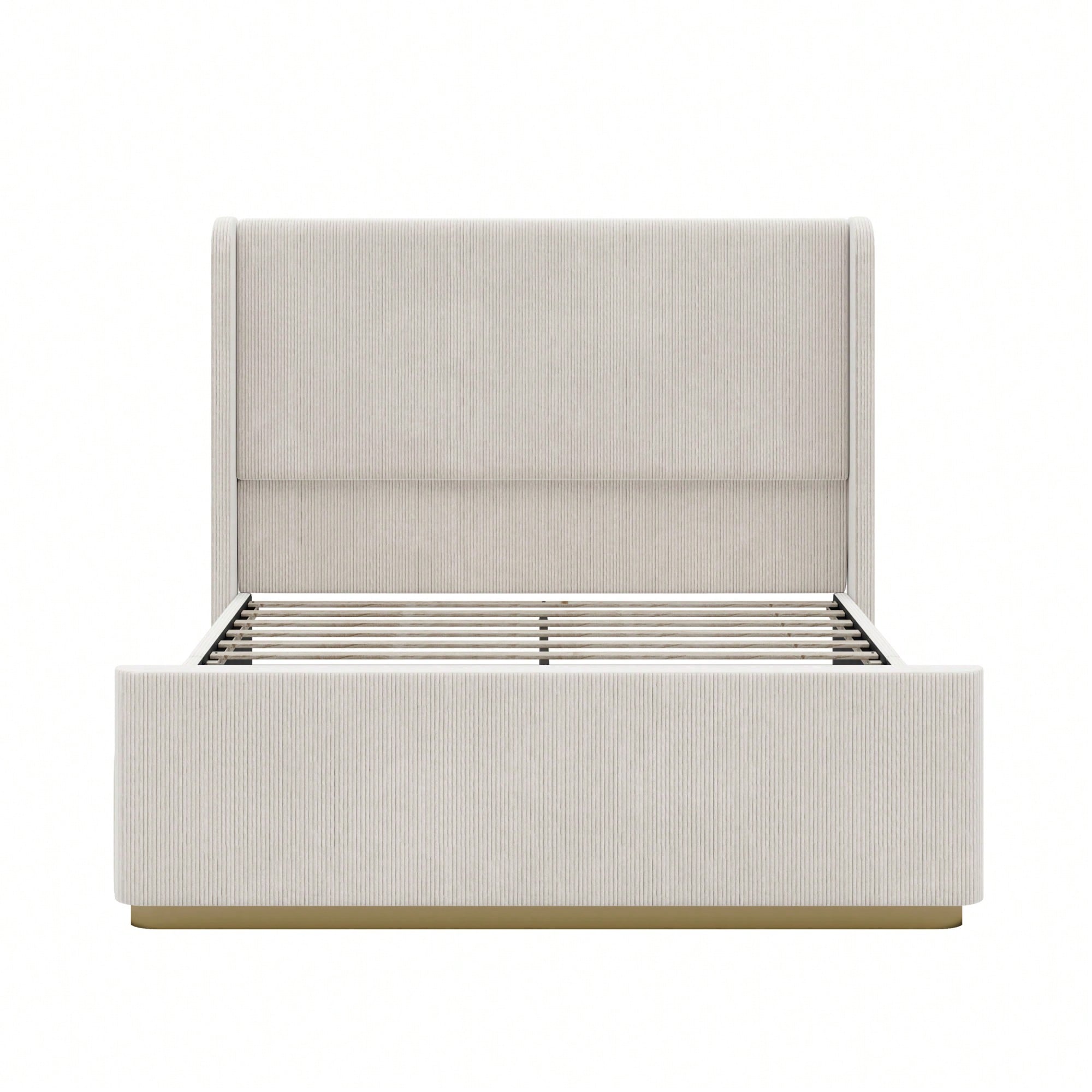 Queen Size Corduroy Platform Bed With Metal Legs,Upholstered Headboard, Sturdy Support, Easy Assembly - Modern And Timeless Design
