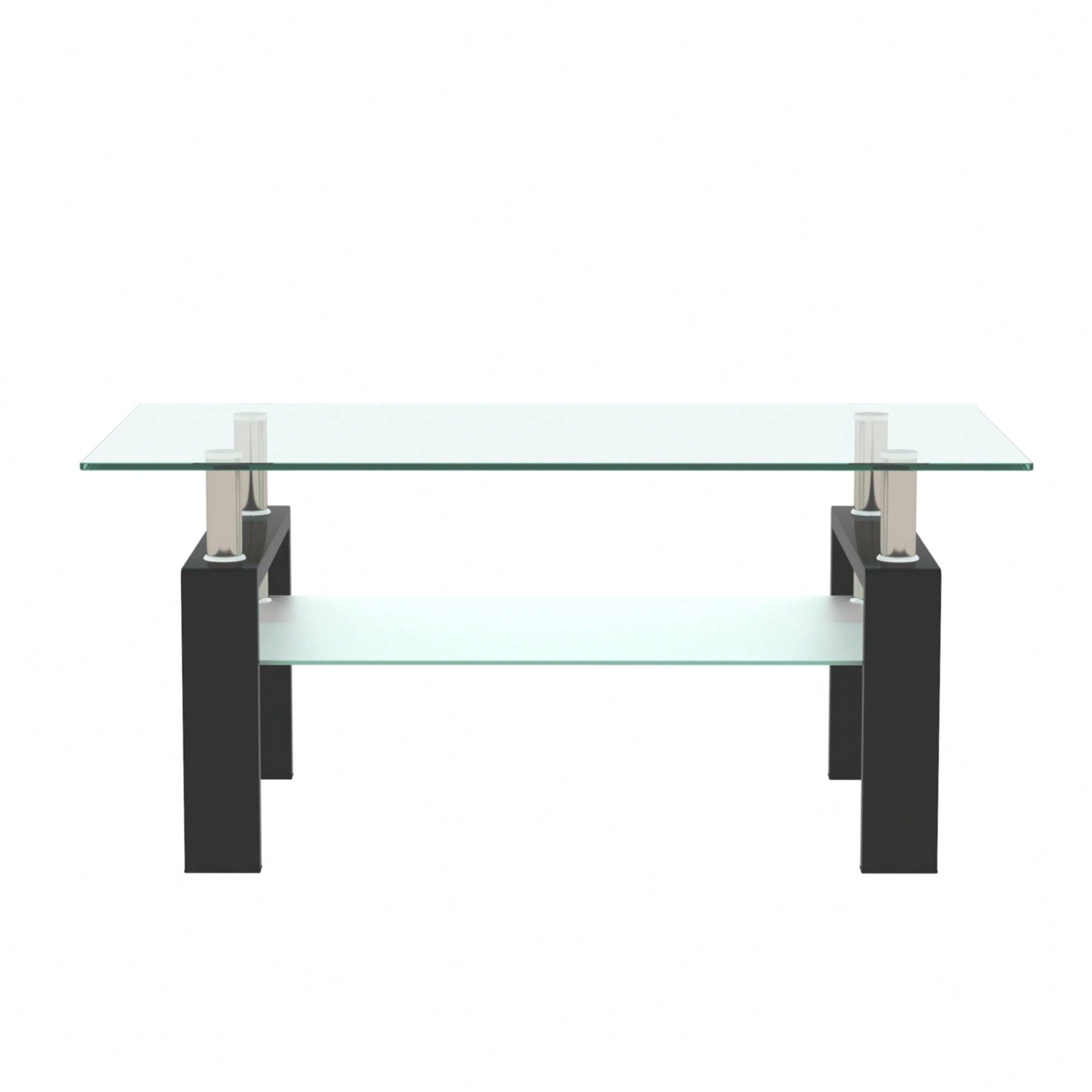 Rectangle Black Glass Coffee Table, Modern Side Center Tables For Living Room