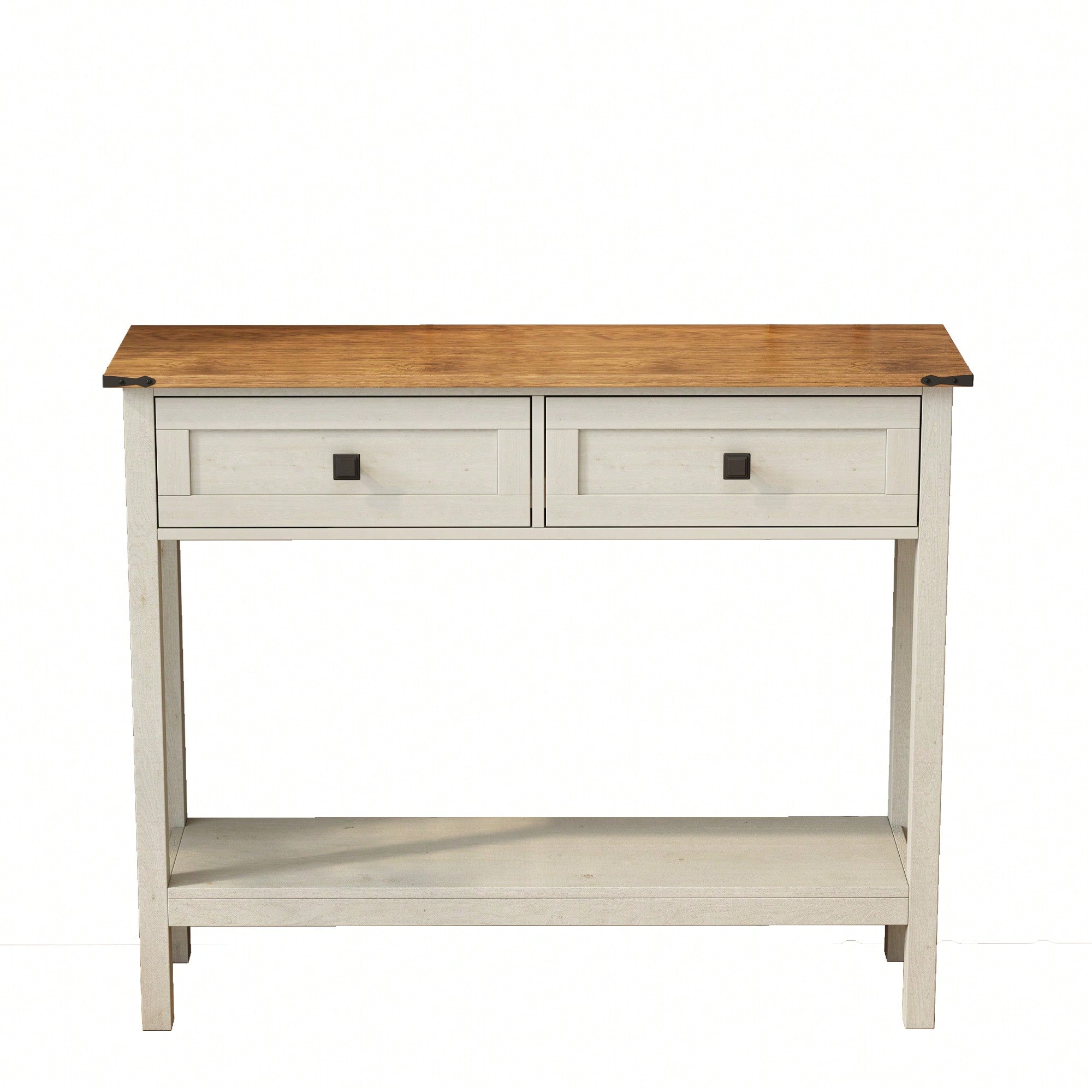Regular price $121.99 USDSale price $121.99 USD Regular priceUnit price per$207.99 USDSale Sold outFeatures- Rustic style wood console table with two storage drawers and a bottom shelf.- Durable MDF construction ensures stability and longevity.- Metal handles enhance functionality and...