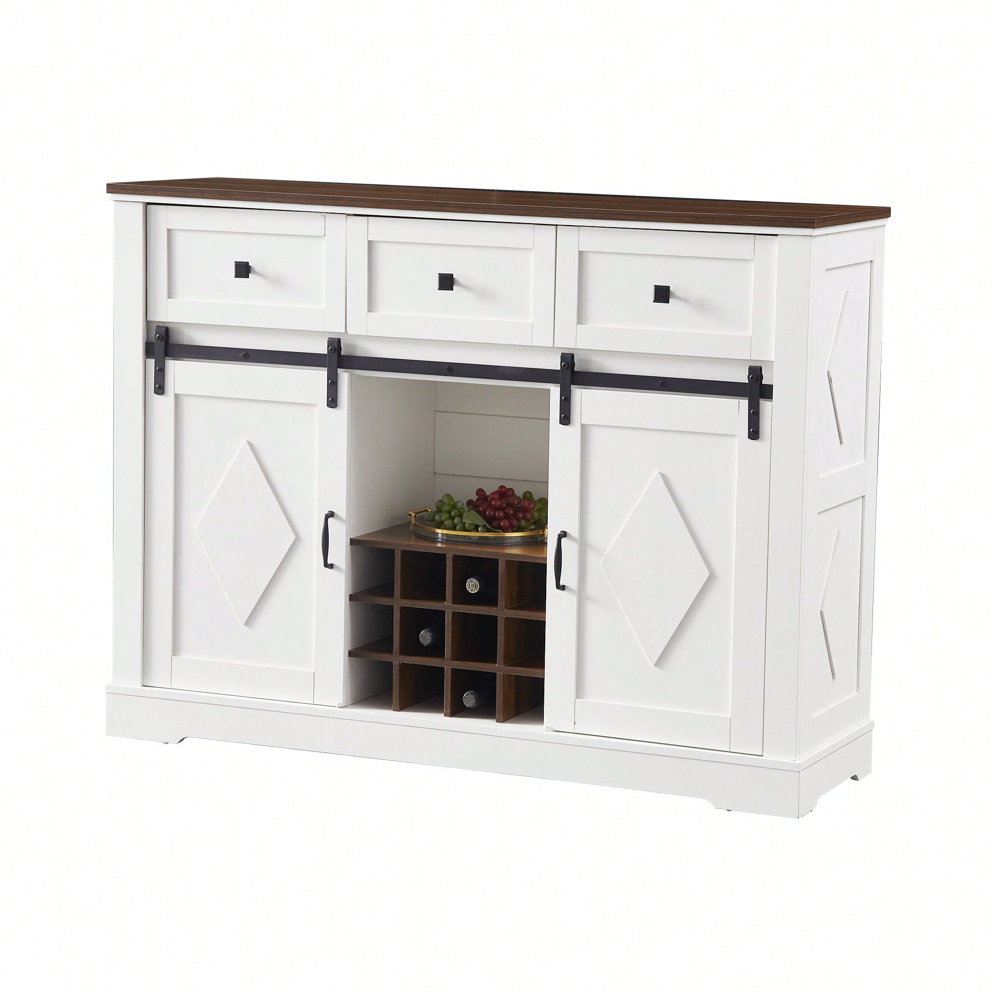 Rustic Farmhouse Buffet Cabinet With Sliding Barn Door, Storage Sideboard With 2 Doors And 3 Drawers For Dining Room And Living Room