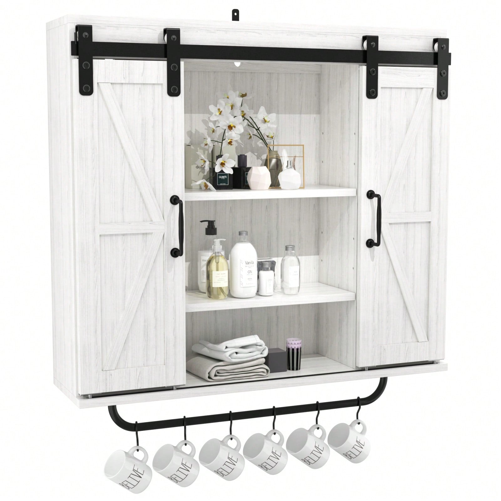 Regular price $133.99 USDSale price $133.99 USD Regular priceUnit price per$226.99 USDSale Sold out1.Rustic wood wall storage cabinet with sliding barn doors adds charm and functionality to any room2.3-tier design provides ample storage space for kitchen, dining room, bathroom,...