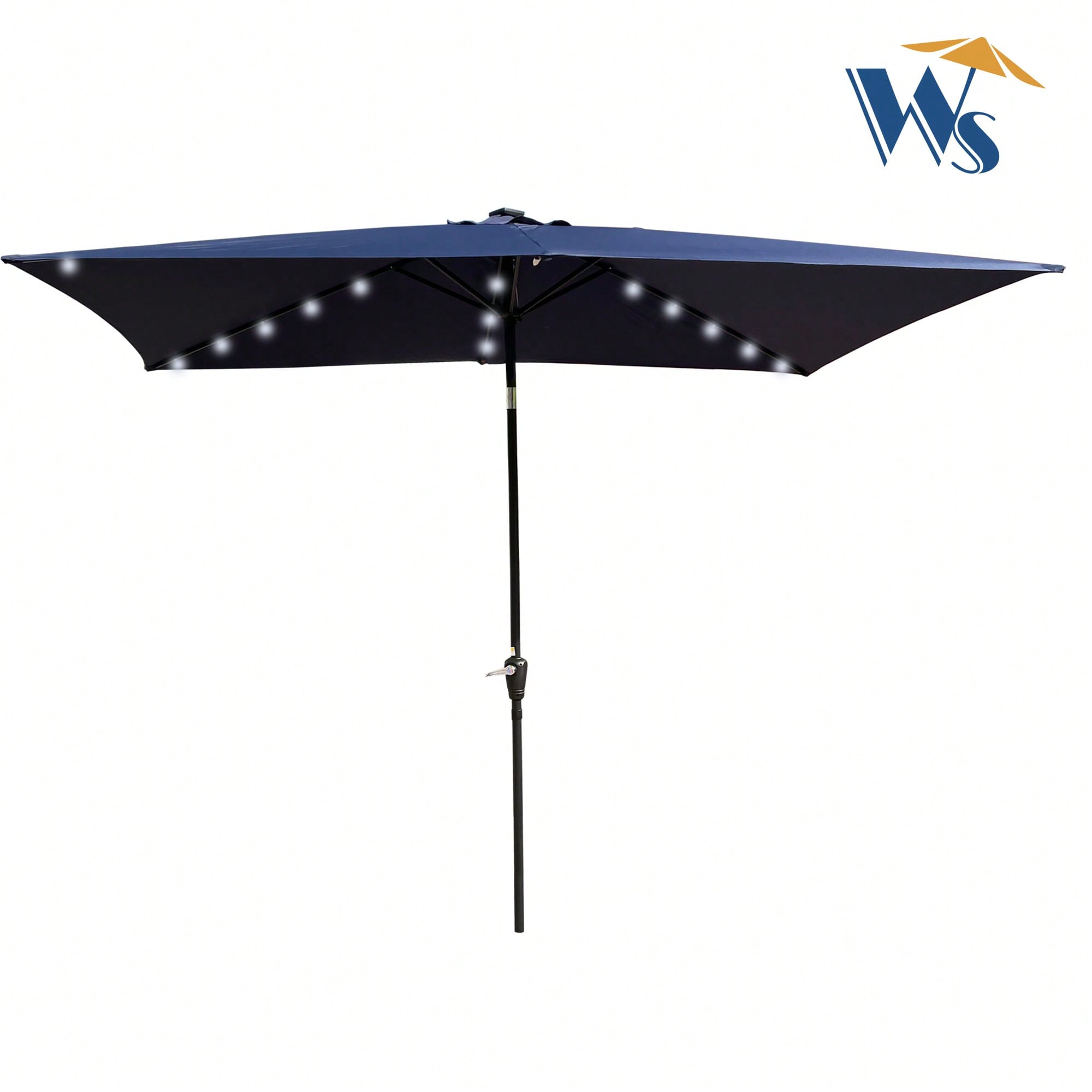 10x6.5ft Rectangular Solar LED Market Umbrella With Crank And Tilt For Patio, Garden, And Pool Shade