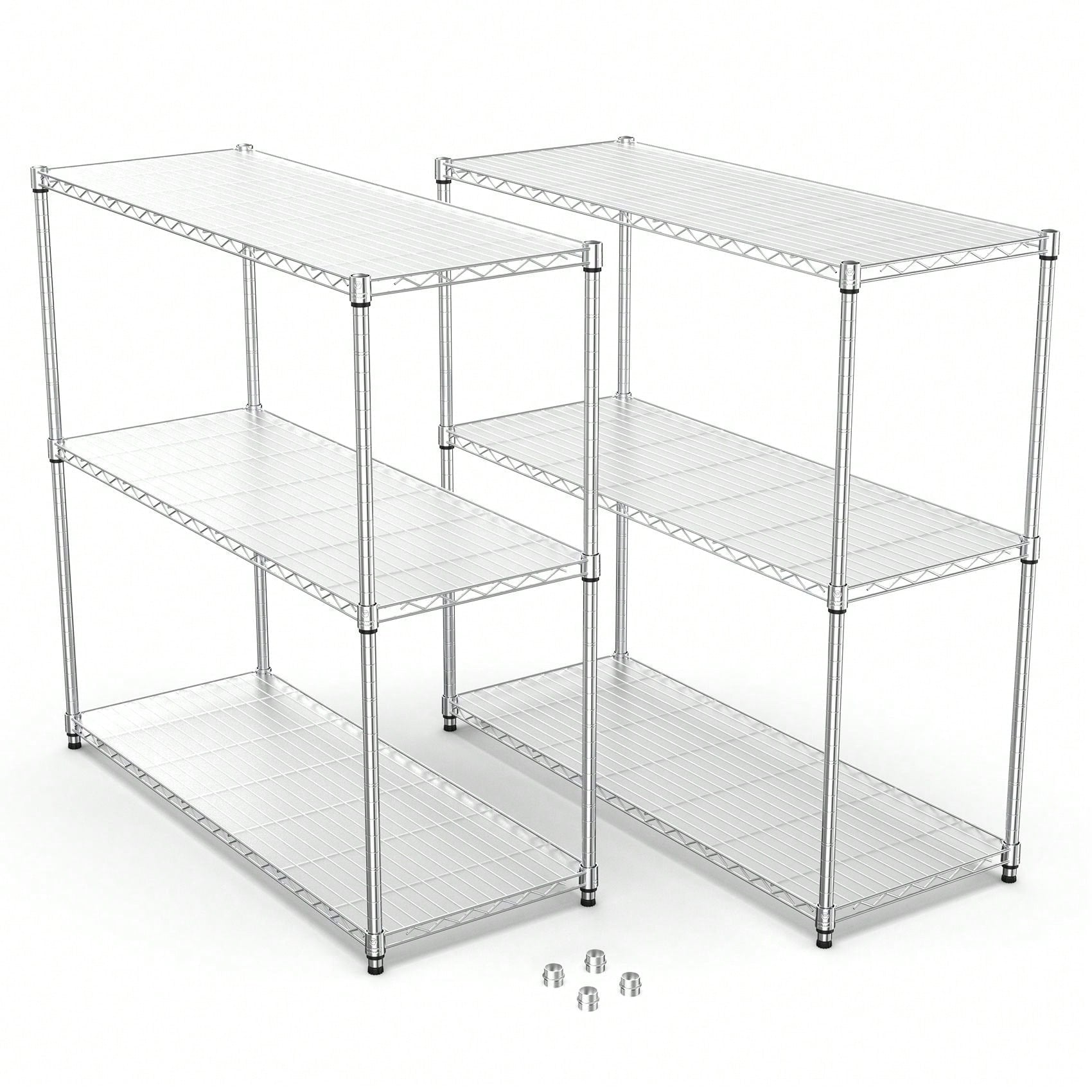 Set Of 2, Adjustable Shelf Wire Shelving Unit, Heavy Duty Shelving With Leveling Feet, 3 Tier Large Capacity, Easy To Assemble