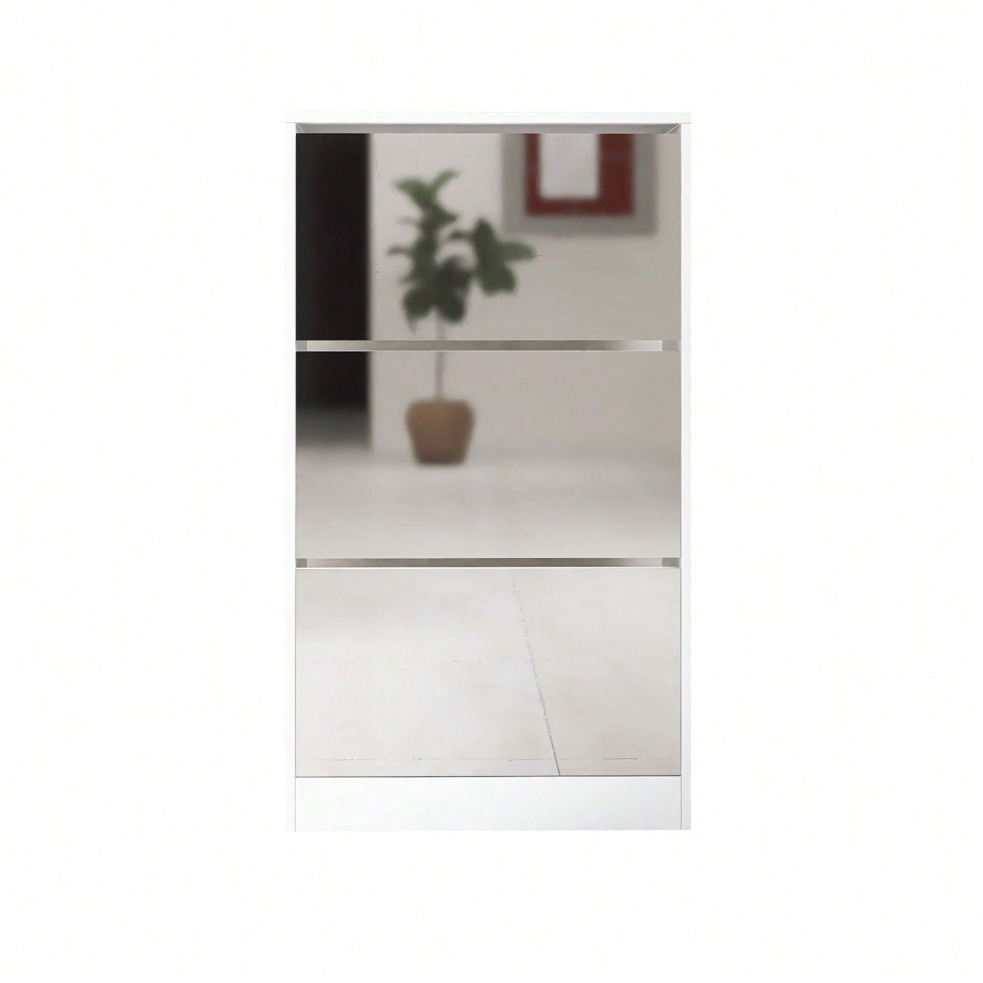 Shoe Storage Cabinet With Mirror, Wood Slim Shoe Rack 3 Tier Shoe Organizer For Home And Apartment