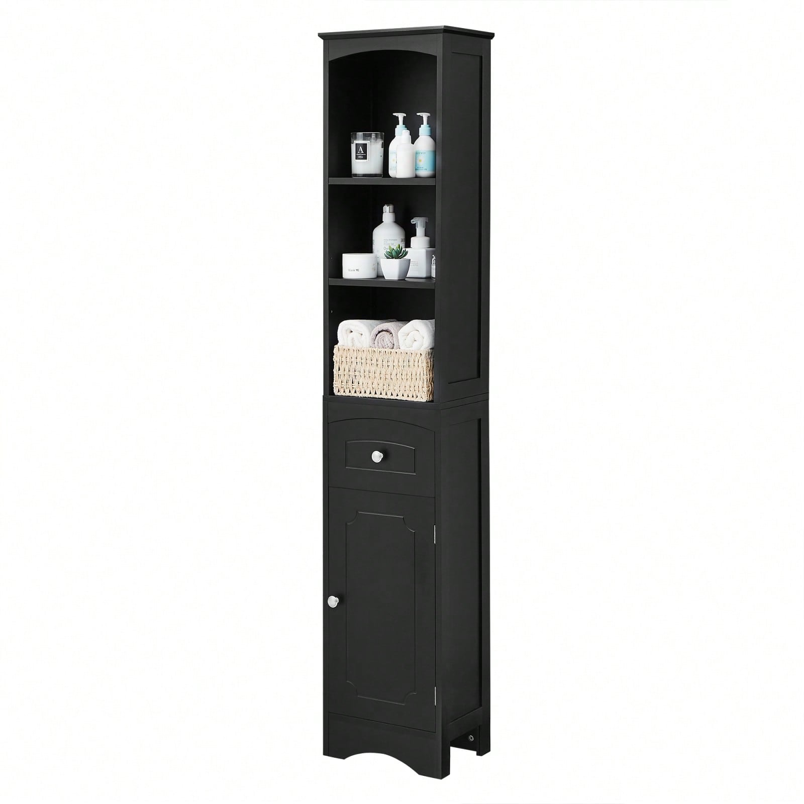 Slim Freestanding Bathroom Storage Cabinet with Drawer Adjustable Shelf Anti-Tip Design for Small Spaces BlackRegular price $128.99 USDSale price $128.99 USD Regular priceUnit price per$209.99 USDSale Sold out1.Maximize Bathroom Storage: Featuring three open shelves, a spacious drawer, and an enclosed cabinet with an adjustable shelf, this tall bathroom cabinet provides ample storage for...