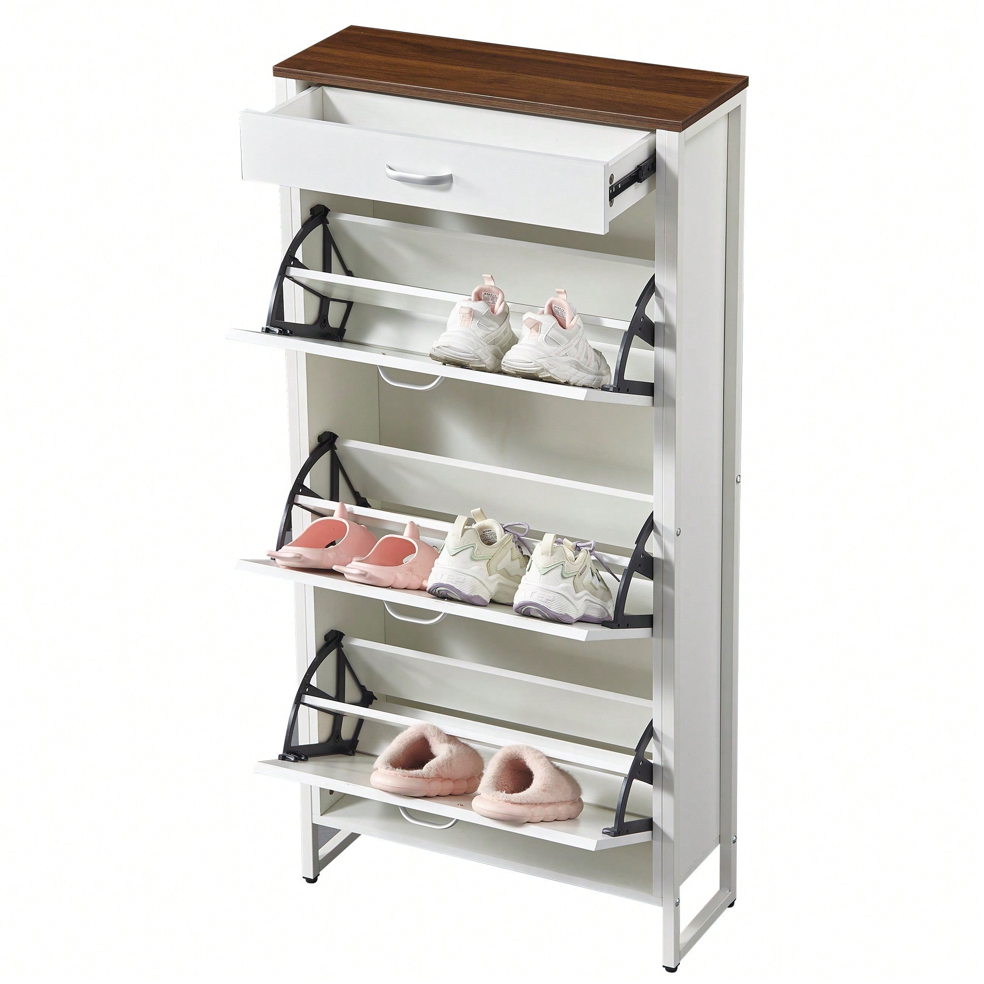 Slim Shoe Storage Cabinet with 3 Flip Drawers and 1 Drawer for Entryway Hallway Narrow Organizer White Walnut FinishRegular price $129.99 USDSale price $129.99 USD Regular priceUnit price per$276.99 USDSale Sold out1. Features:- Shoe storage cabinet with 3 flip drawers and 1 additional drawer - Slim freestanding design ideal for entryway, hallway, or narrow spaces - Holds...