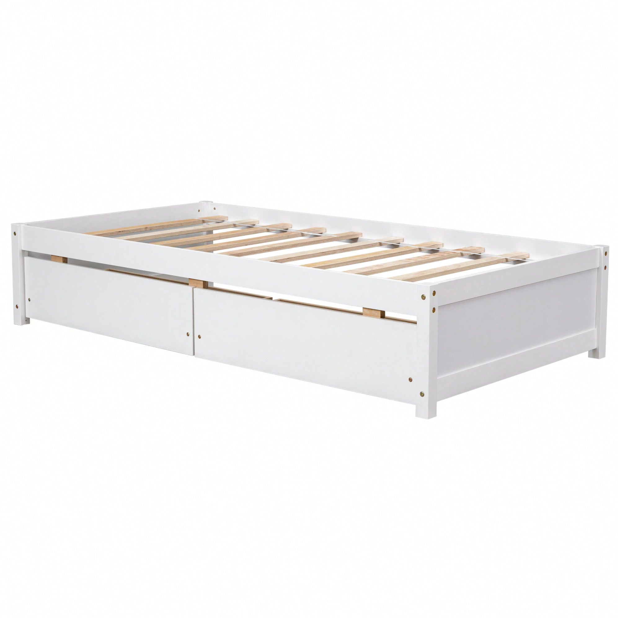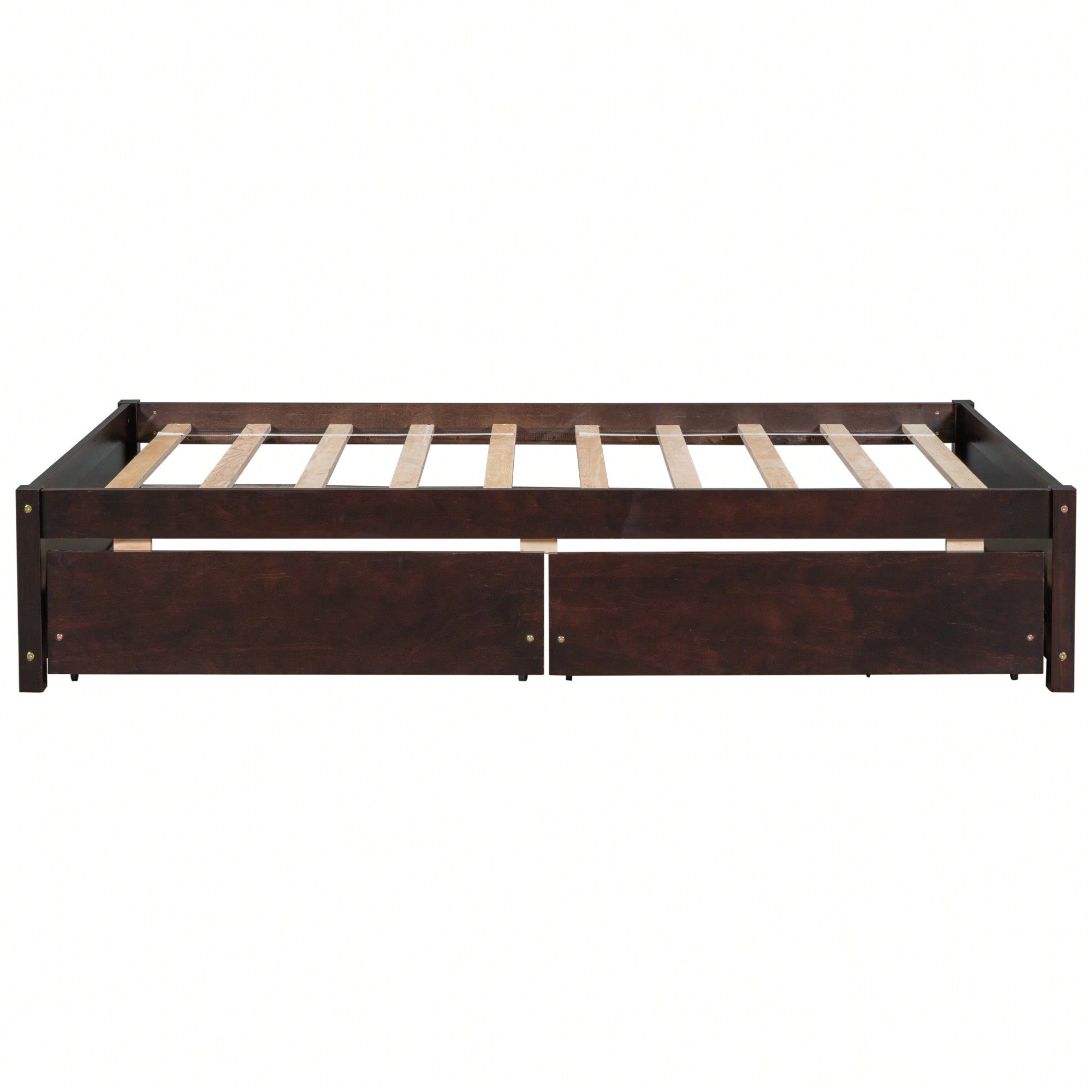 Solid Wood Twin Bed With 2 Storage Drawers No Box Spring Required
