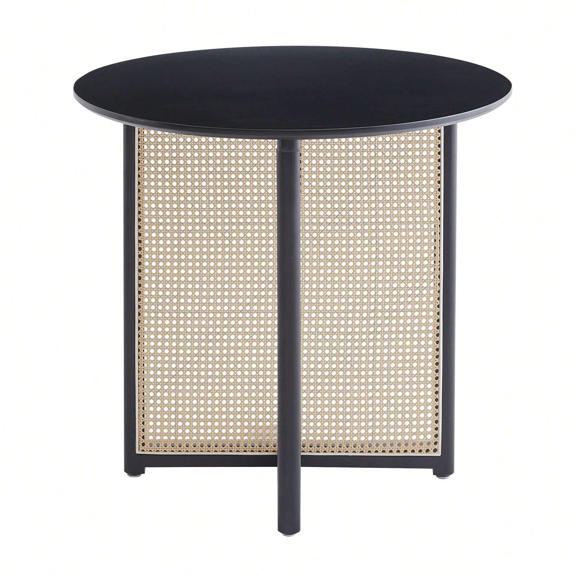 Solid Wood Round Dining Table With Rattan Accents For 2-4 People 31.5 Inch Diameter Black