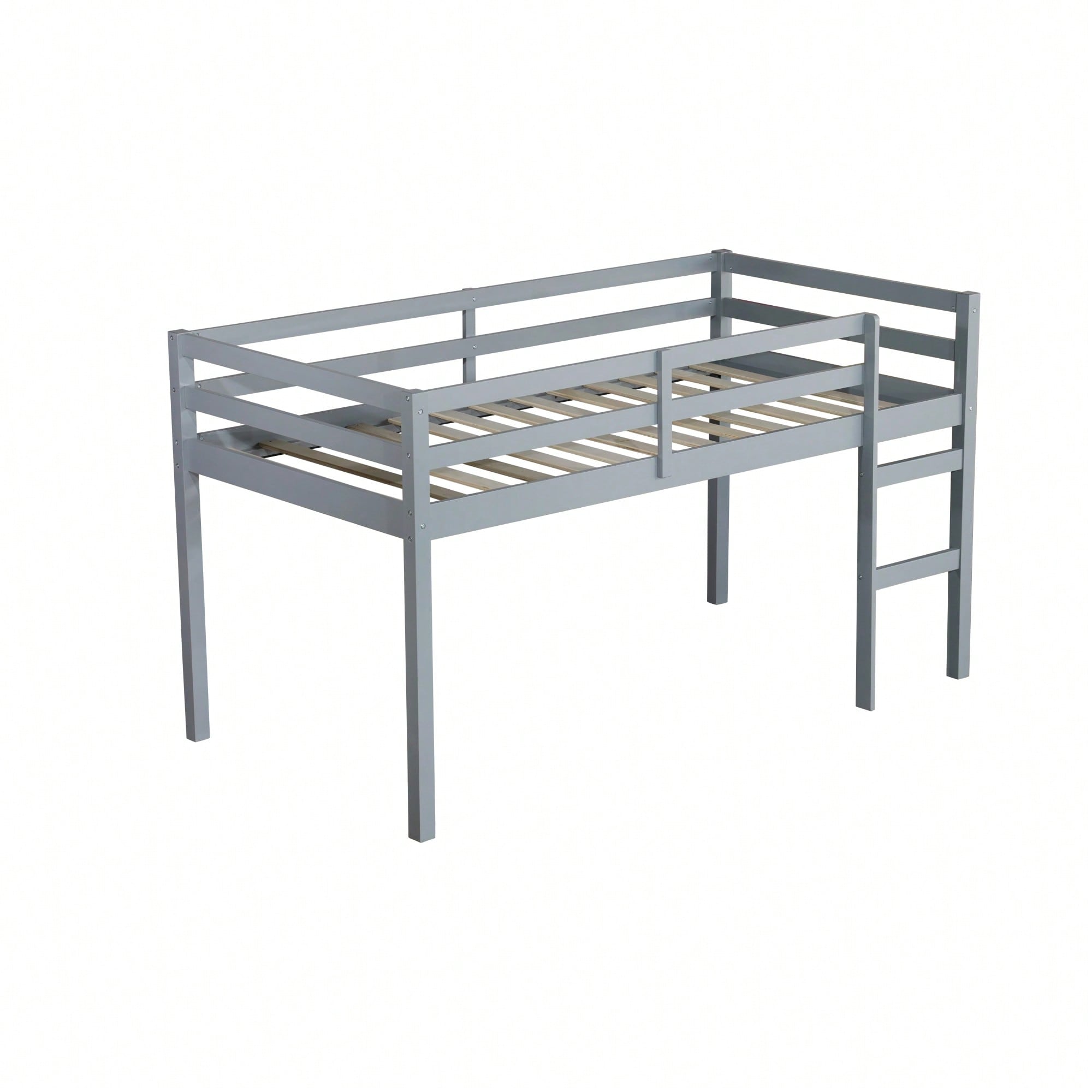 Solid Wood Twin Loft Bed With Ladder And Reinforced Slats In Grey Finish