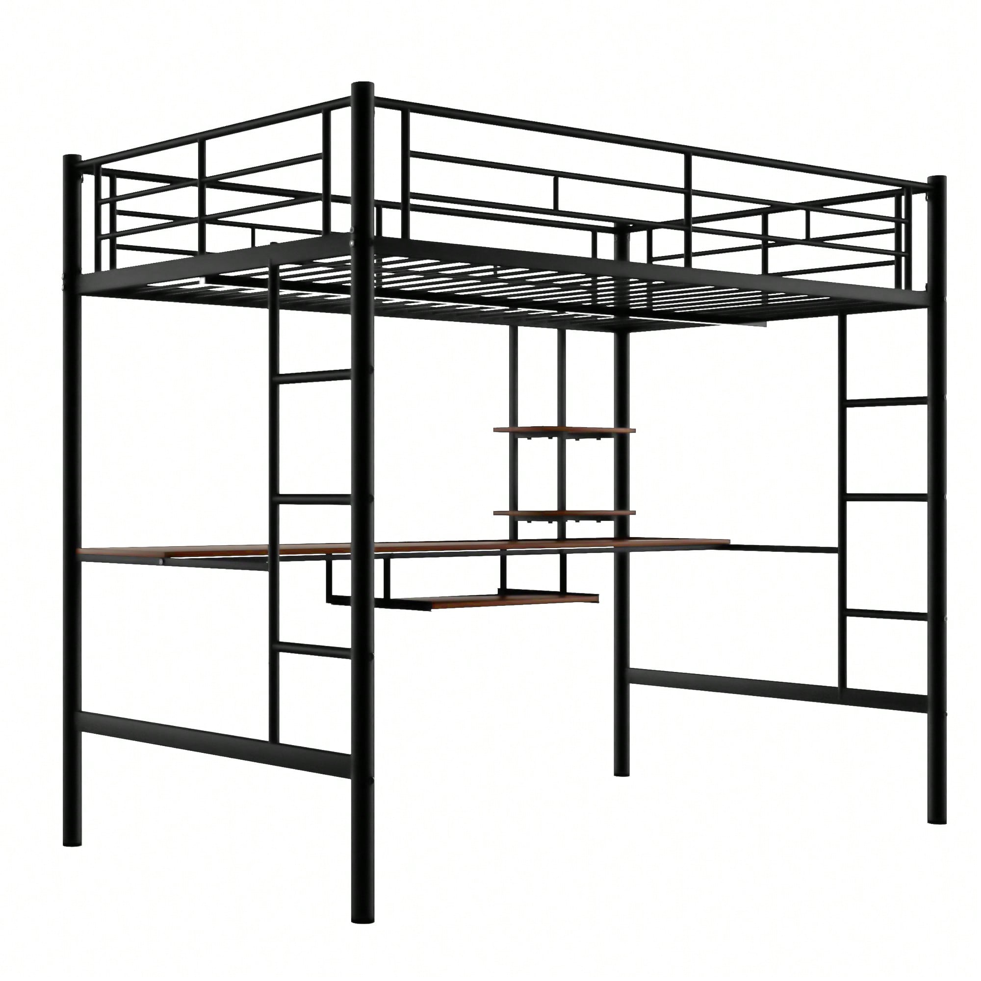 Space Saving Full Loft Bed With Integrated Desk And Shelf In Black