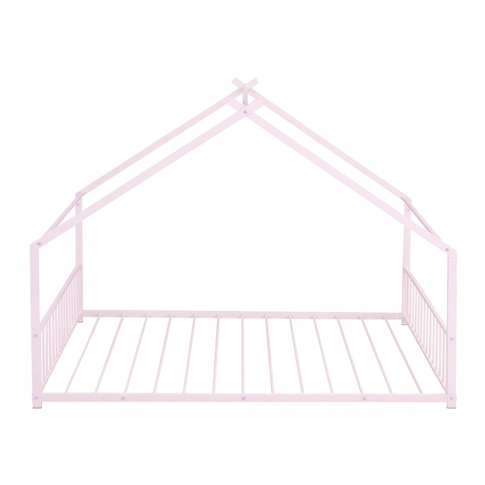 Sturdy Full Size Metal House Bed for Kids Fun Playhouse Design Semi-Enclosed Easy Assembly 350lbs Capacity