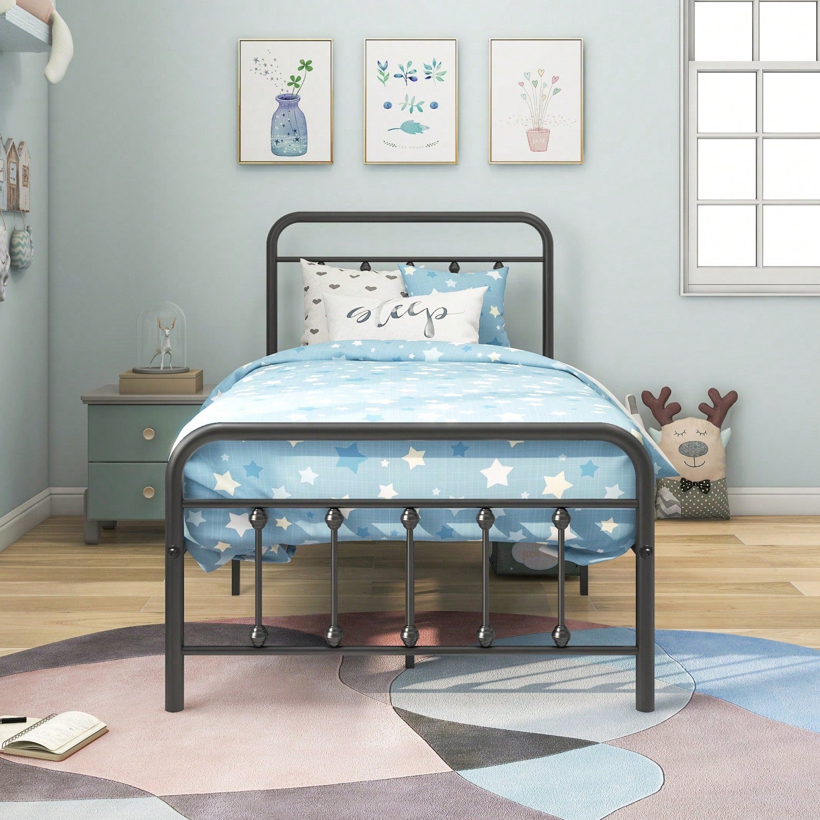 Sturdy Twin Size Metal Bed Frame - Modern Black Design for Stylish Bedroom Comfort