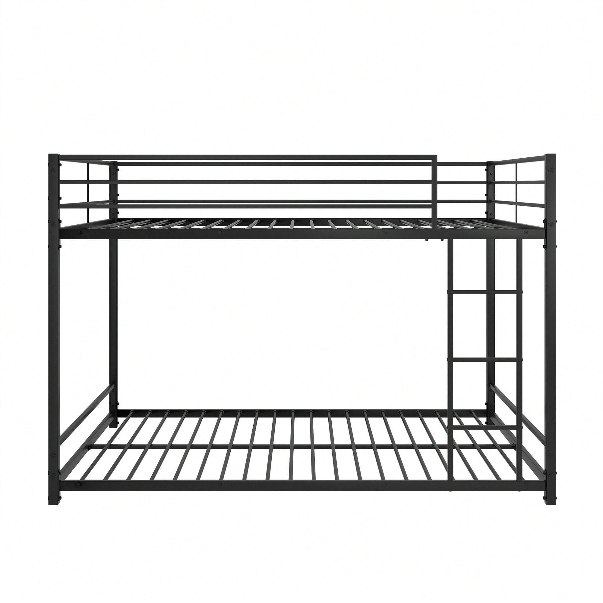 Sturdy Full Over Full Metal Bunk Bed Frame with Guard Rails Heavy Duty Space-Saving Design Easy Assembly Black Finish