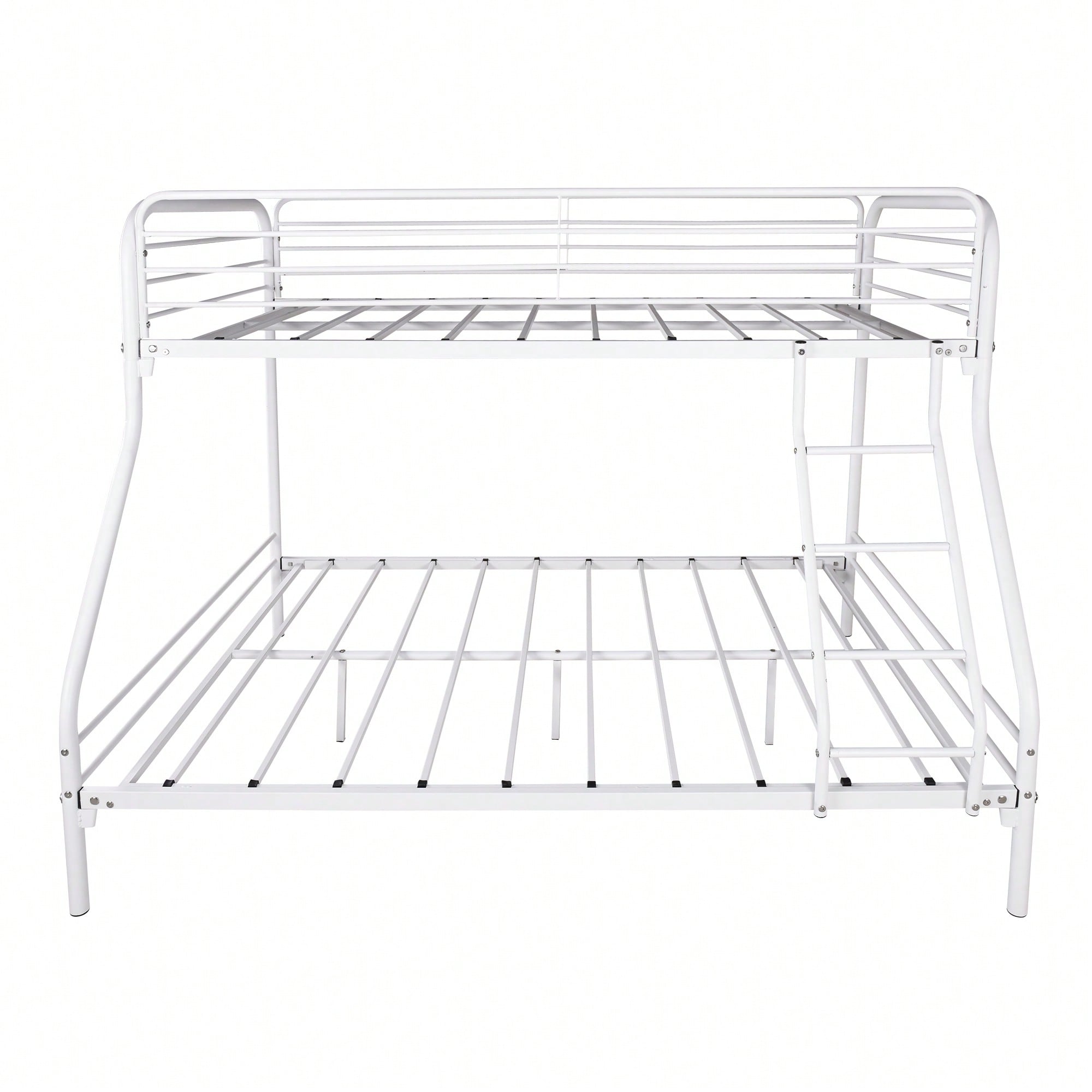 Sturdy Twin Over Full Metal Bunk Bed With Enhanced Guardrail Easy Assembly White Finish