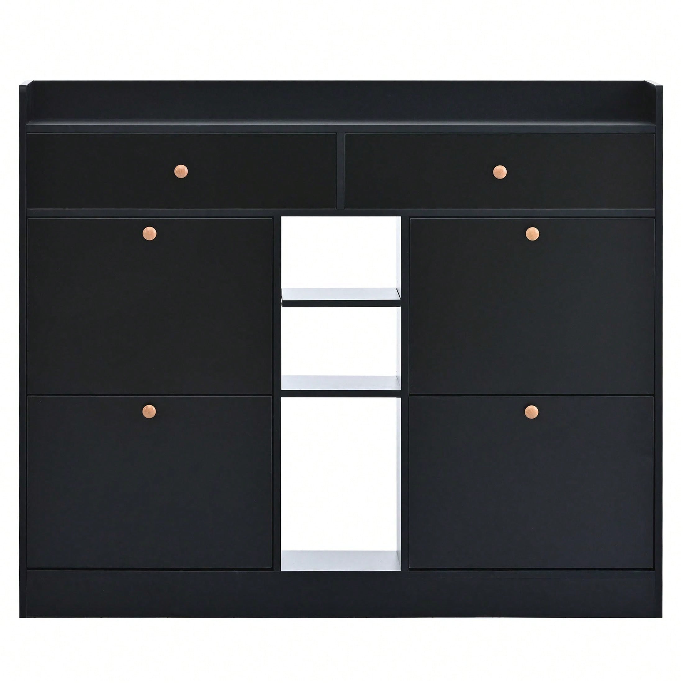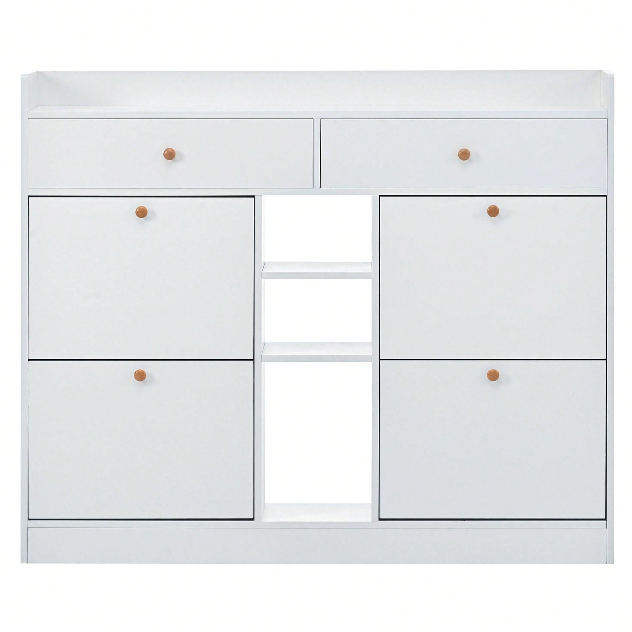 Stylish 2 Tier Shoe Storage Cabinet With Drawers For Entryway And Bedroom Flip Door Design